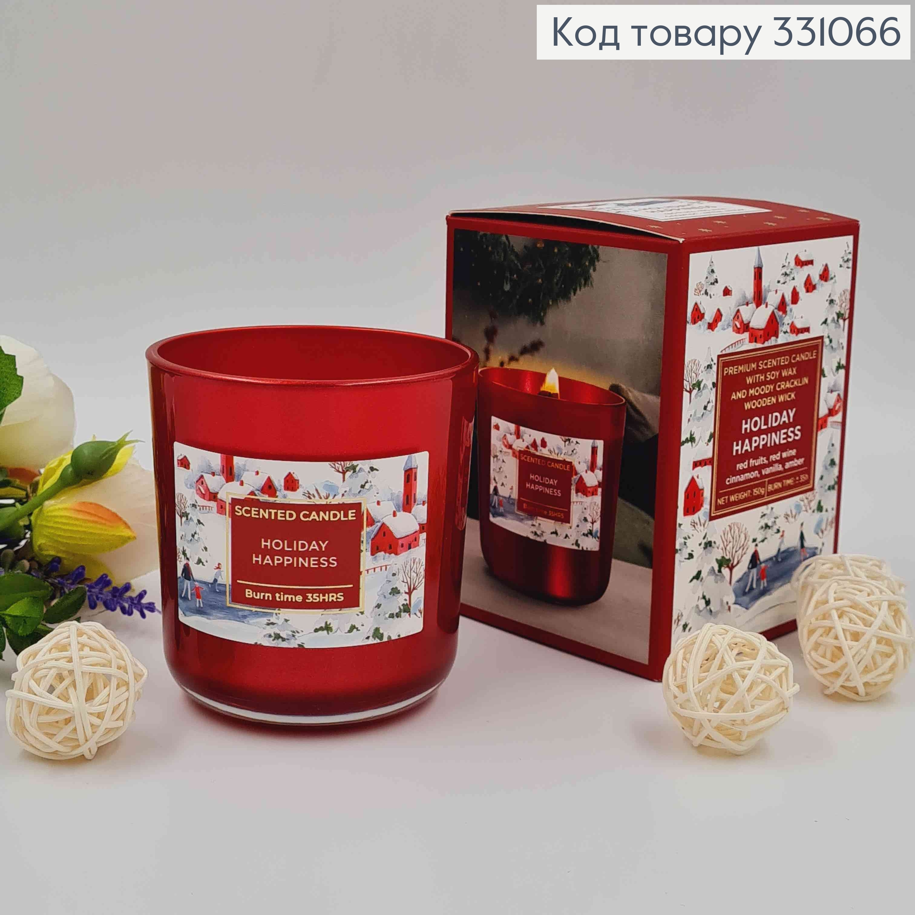 Аромасвічка СОЄВА,дерев"ян. гніт, HOLIDAY HAPPINESS(red fruits,red wine,cinamon,vanilla,amber),150г