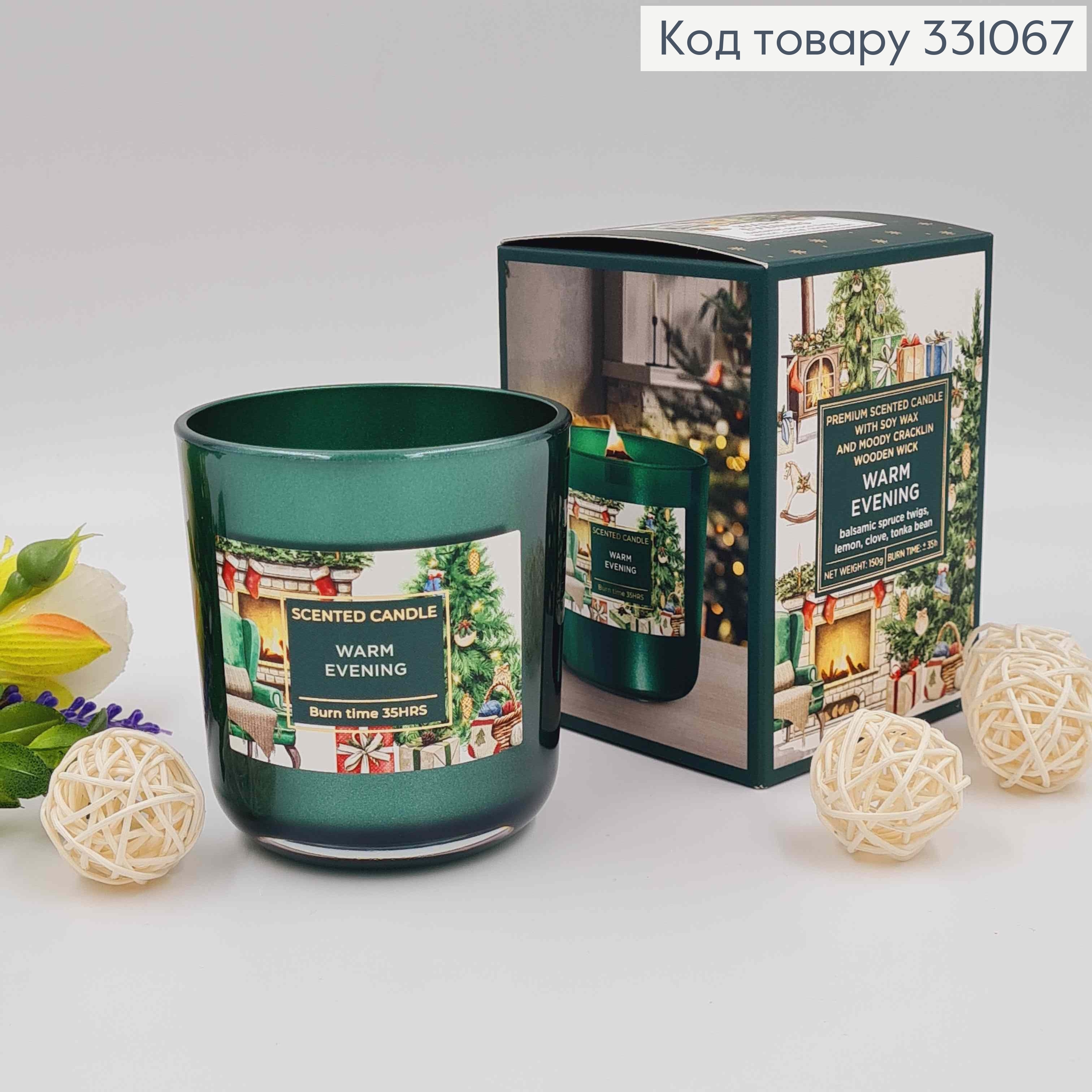 Аромасвічка СОЄВА,дерев"яний гніт, WARM EVENING(balsamic spruce twigs,lemon,clove,tonka bean),150г