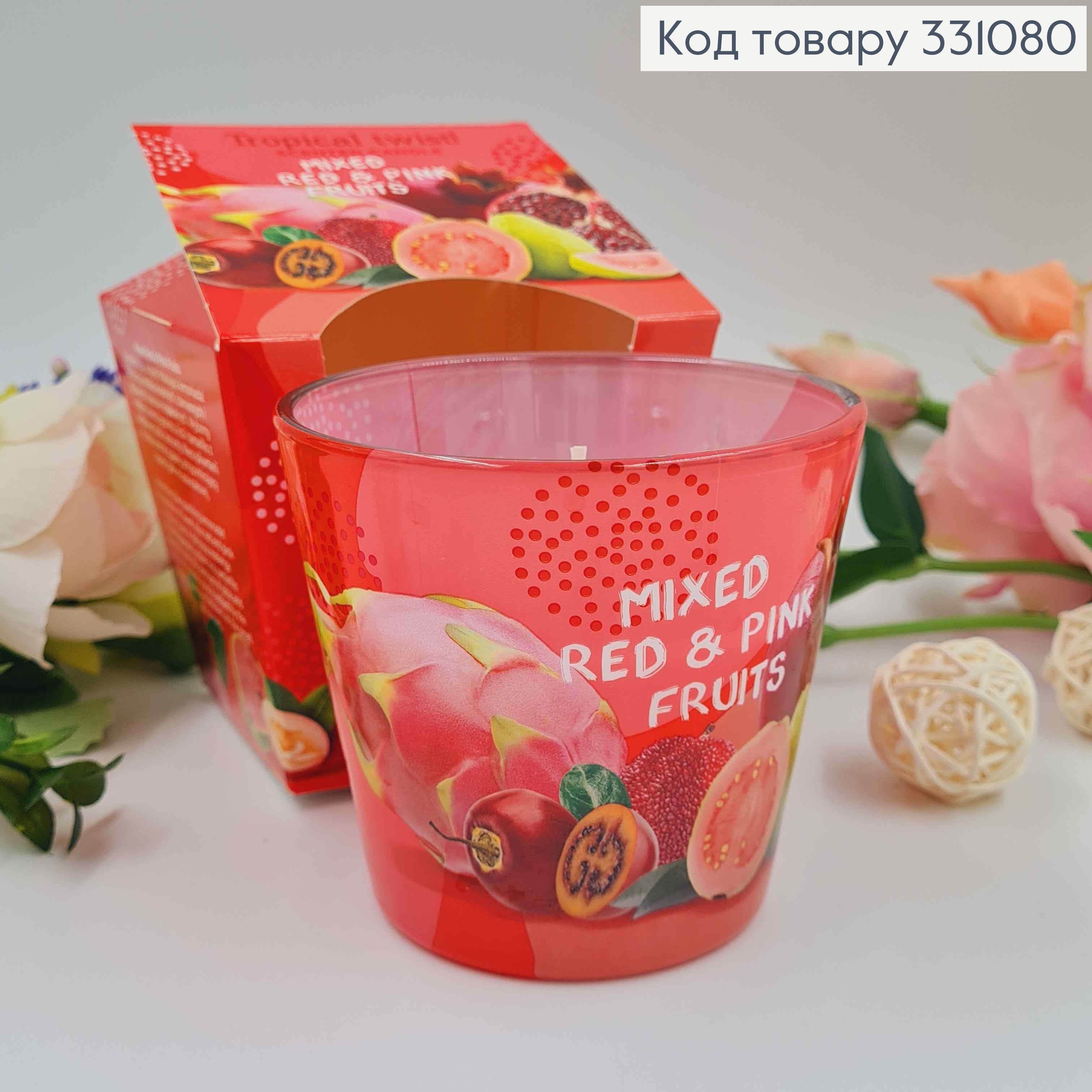 Аромасвічка стакан Tropical twist (MIXED RED & PINK FFUITS), 115г/30годин горіння,Польща