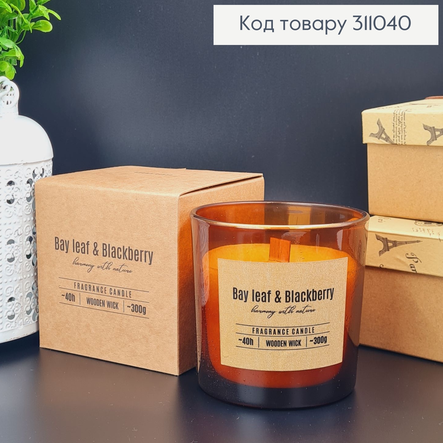Аромасвічка стакан BISPOL Лавровий листок ожина з дерев'яним гнотом 300 г/40 годин, 100-080-325