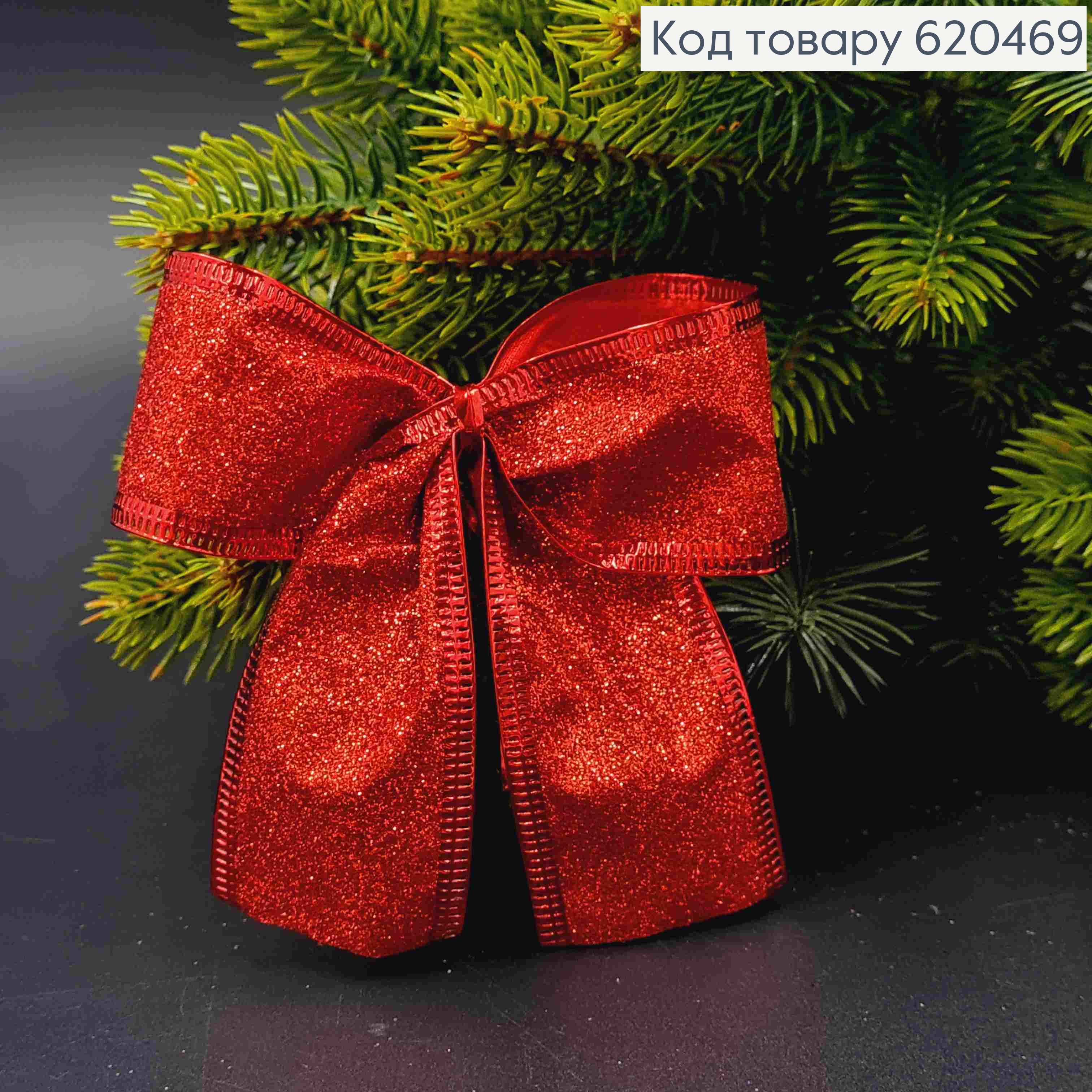 Бант новорічний з блиском ЧЕРВОНИЙ 9*8см (4см стрічка), ручна робота, Україна