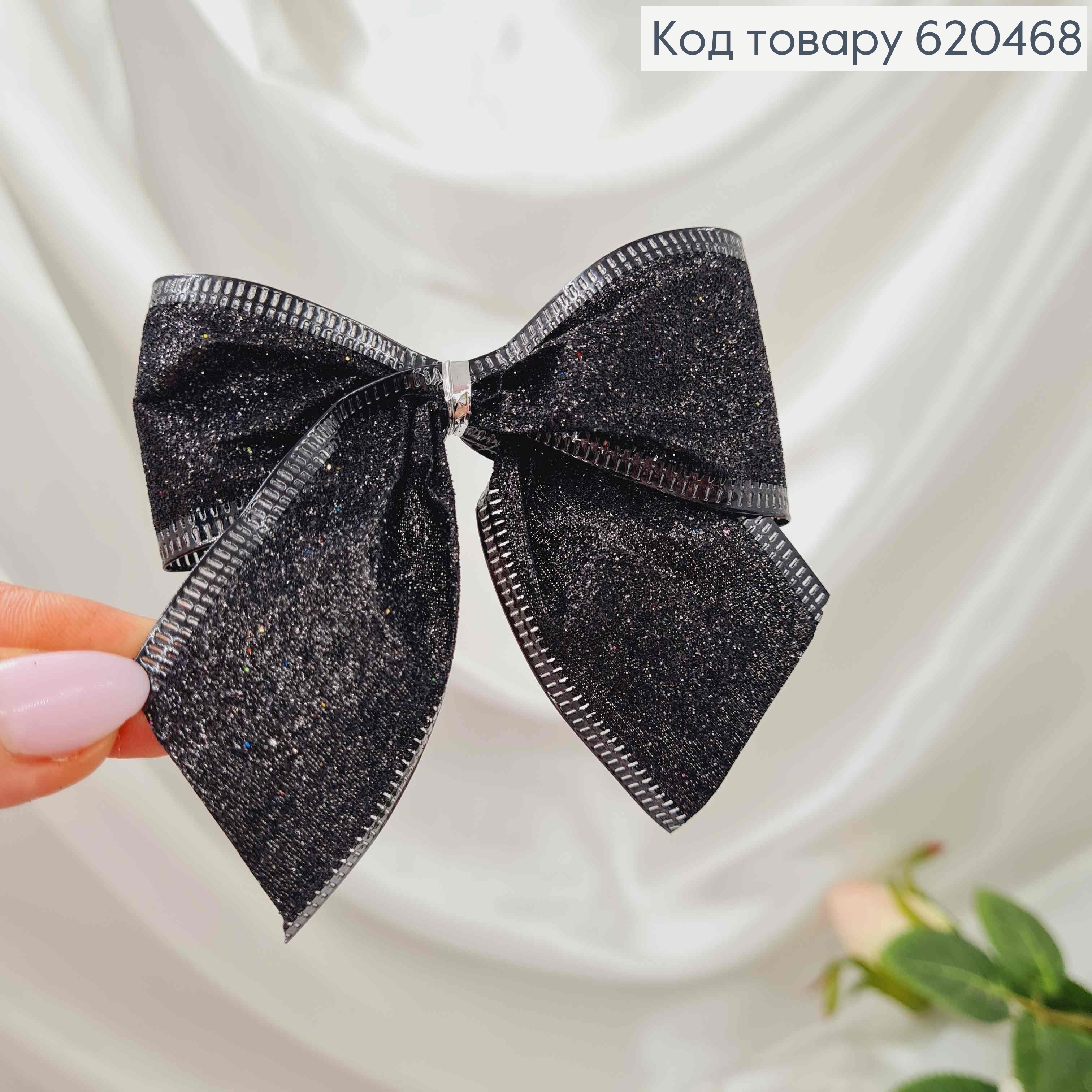Бант новорічний з блиском ЧОРНИЙ 9*8см (4см стрічка), ручна робота, Україна