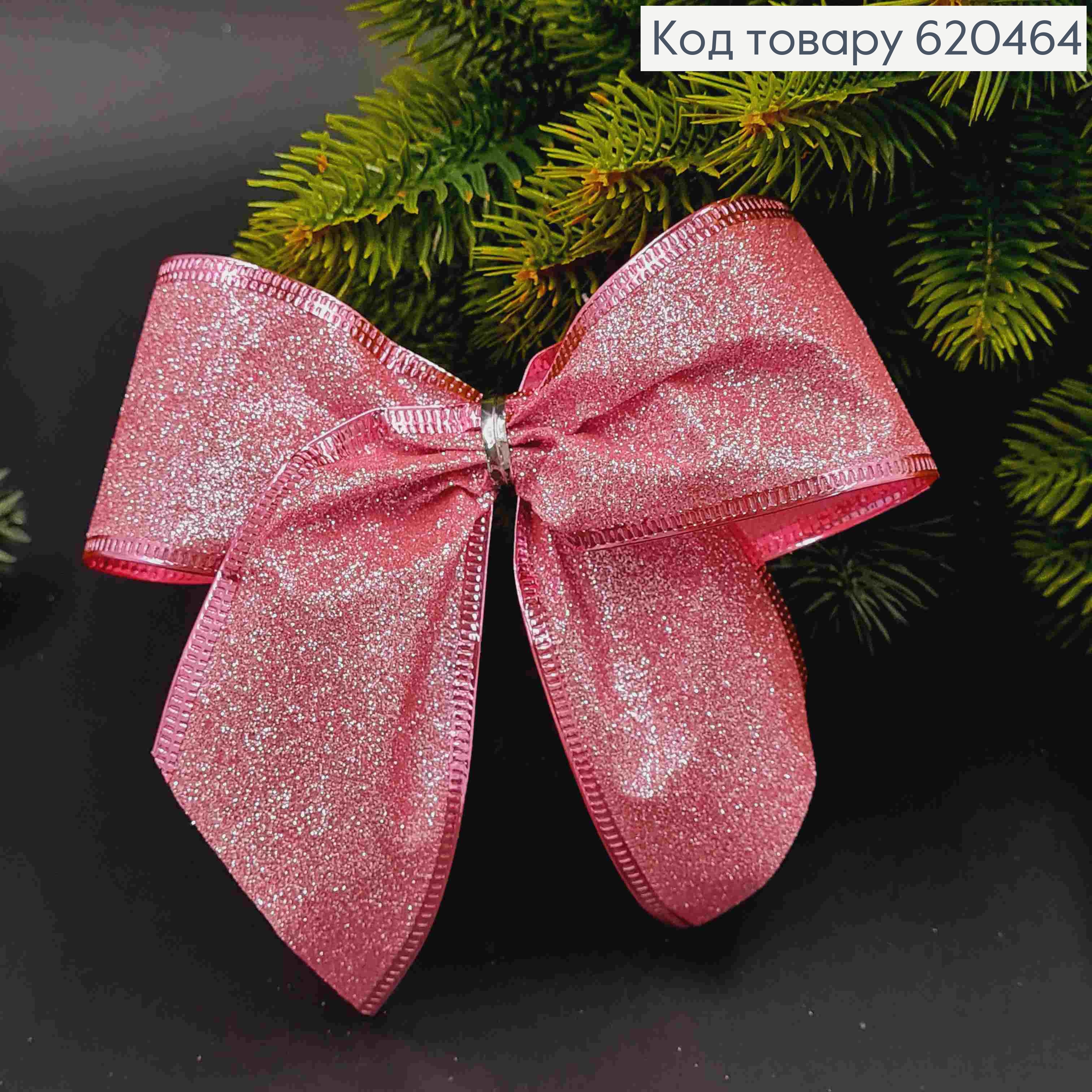 Бант новорічний з блиском РОЖЕВИЙ 9*8см (4см стрічка), ручна робота, Україна 620466 фото