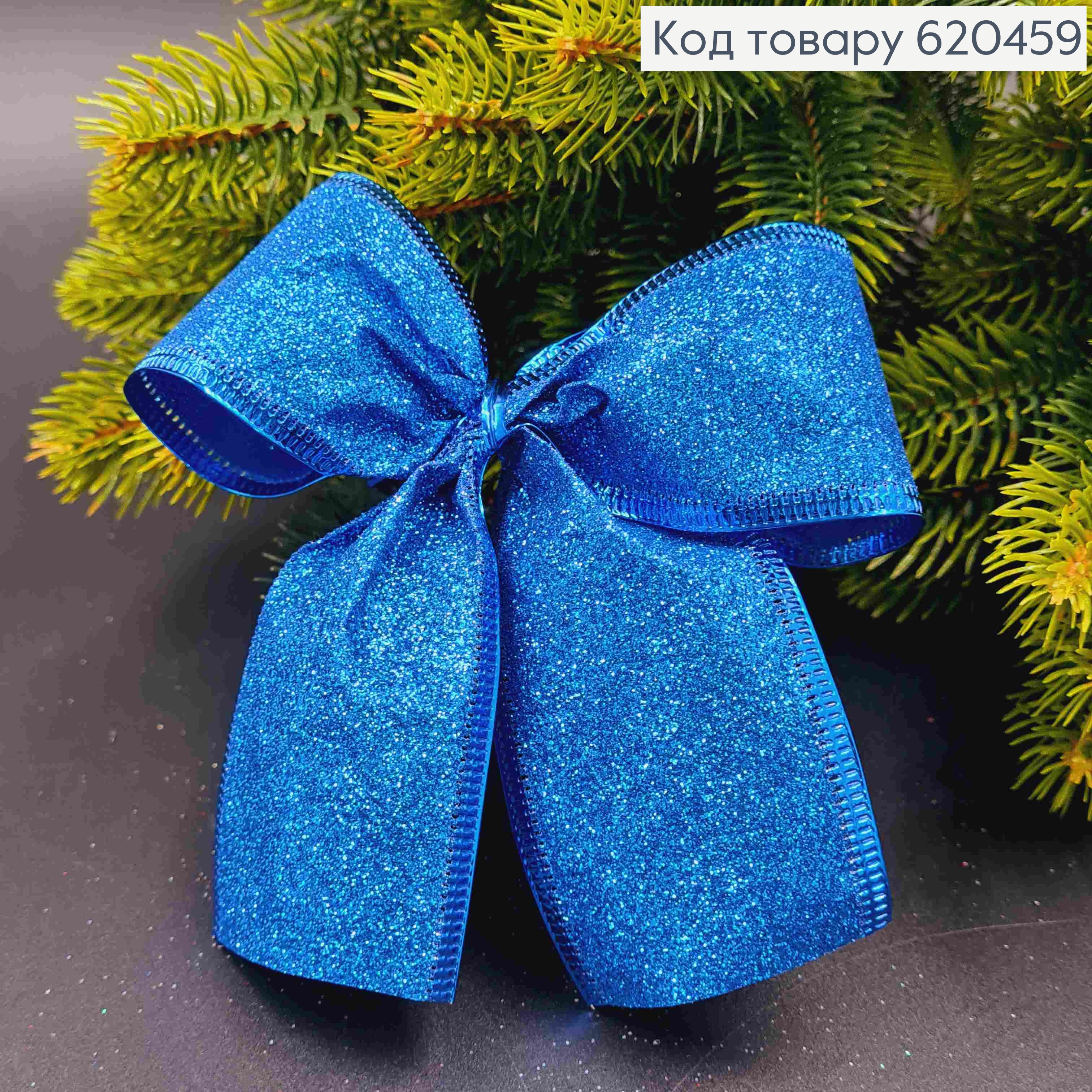 Бант новорічний з блиском СИНІЙ 12*12см (5см стрічка), ручна робота, Україна