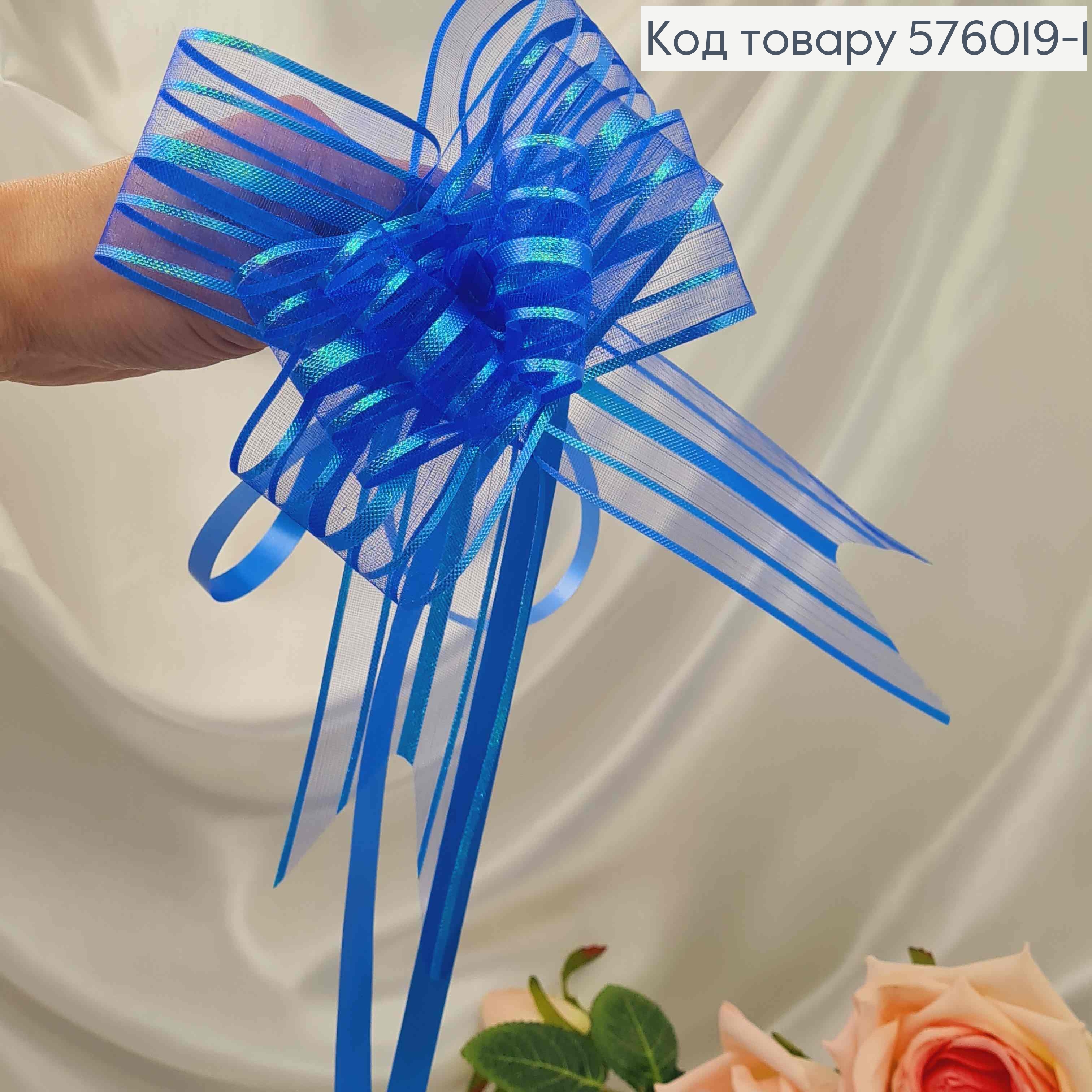 Бант-затяжка для подарунків(10шт), БЛАКИТНОГО кольору(голографічний), шир. 5см, складений 16см 576029 фото