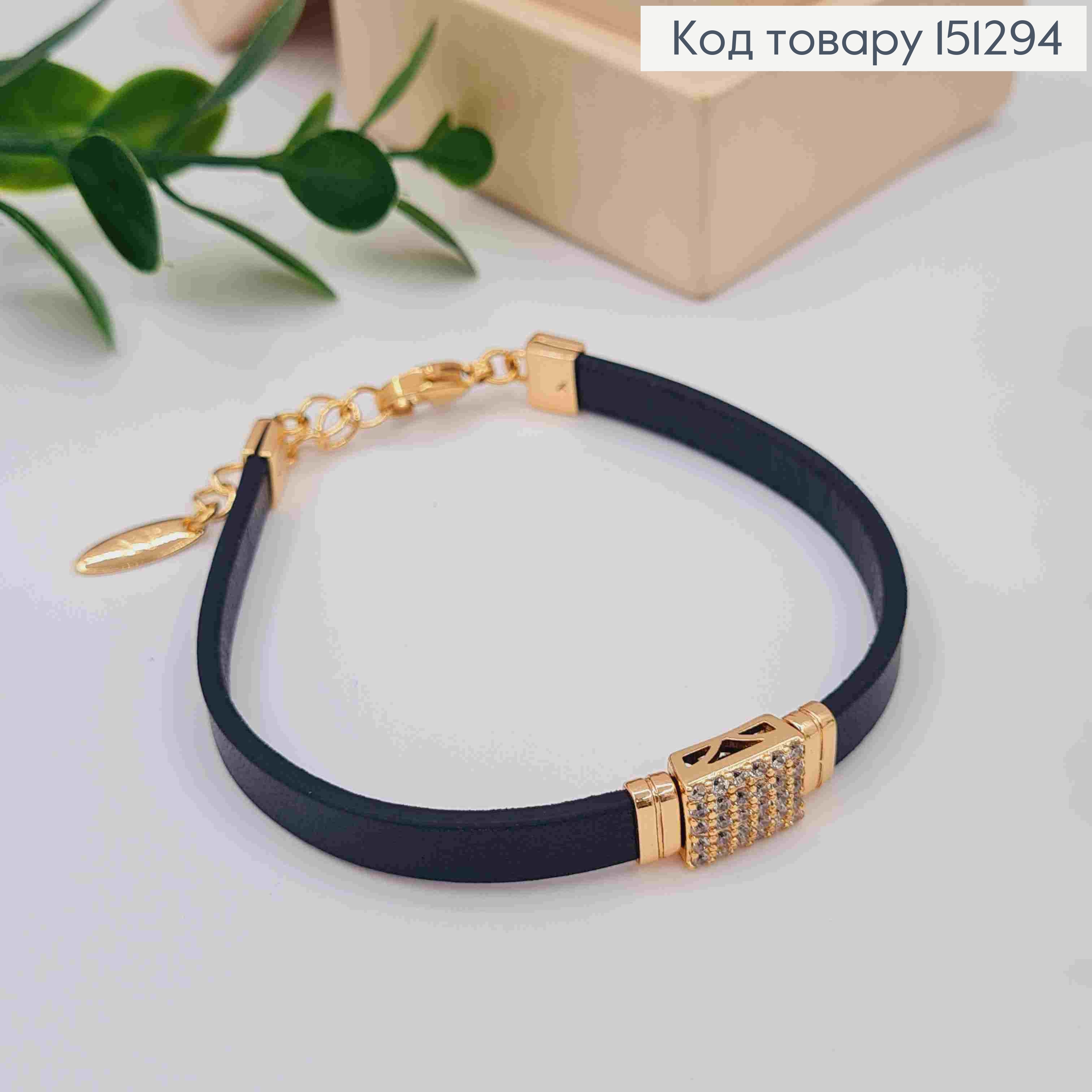 Браслет екошкіра з Квадратною брошкою в Блискучих камінцях, довжина 17+3см, Xuping 18K