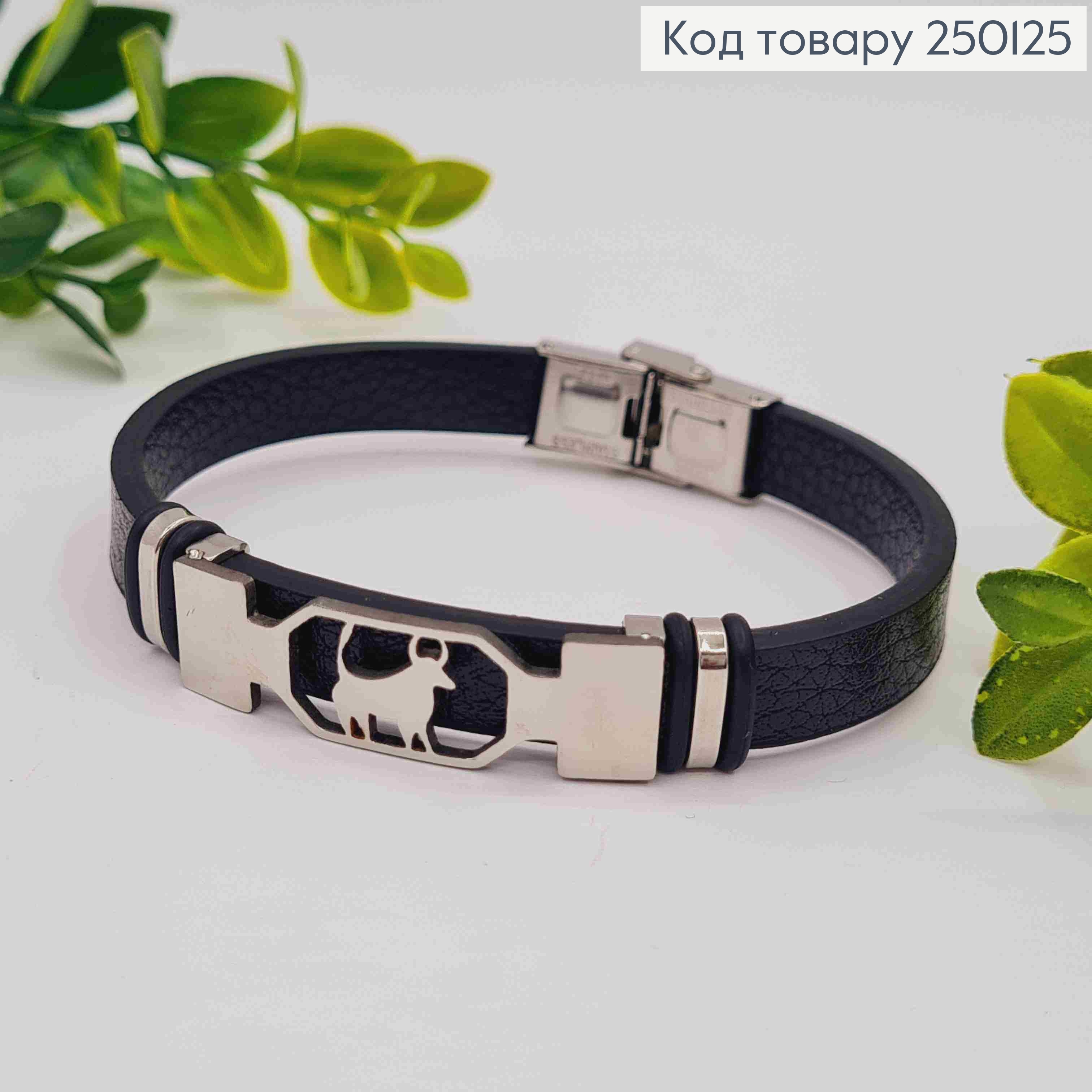 Браслет каучуковий з пластиною знак зодіаку "Овен", шир. 1см, довж. 21см, Stainless Steel 250122 фото