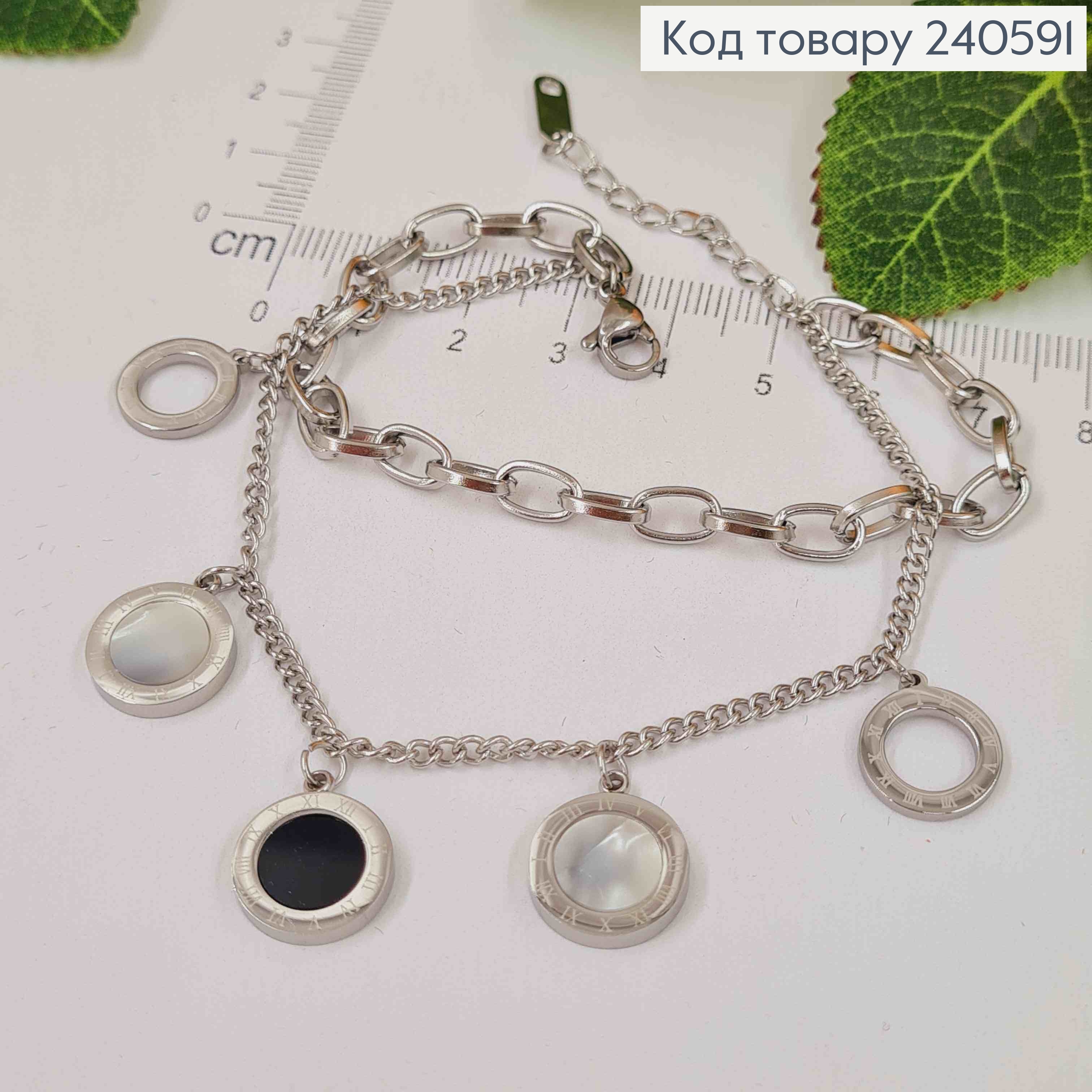 Браслет 16+4см Van Cleef 3 підвіски з чорною і перламутр. емаллю, колір срібний, Stainless Steel