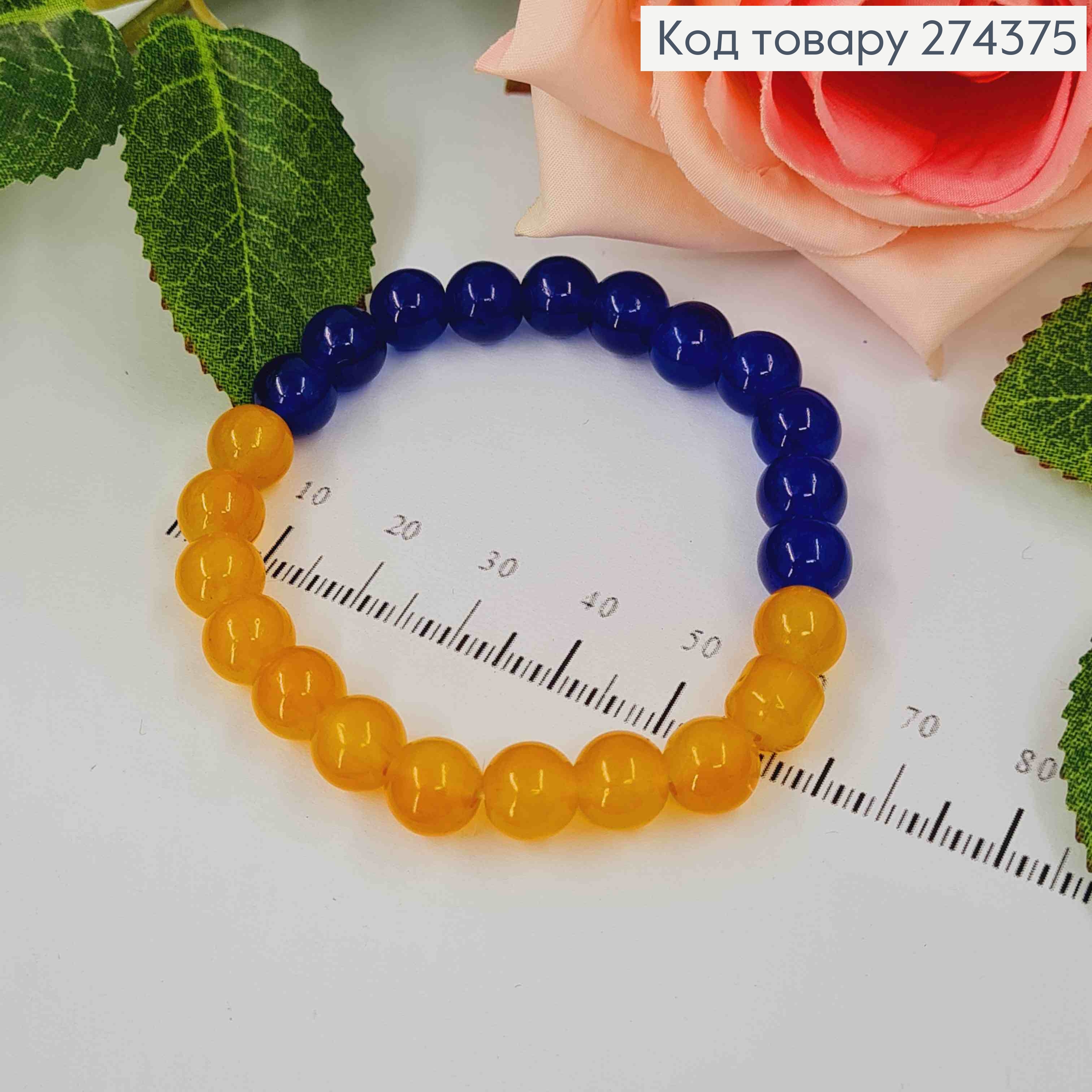 Браслет на резинці, з Синьо-Жовтих напівпрозорих бусинок