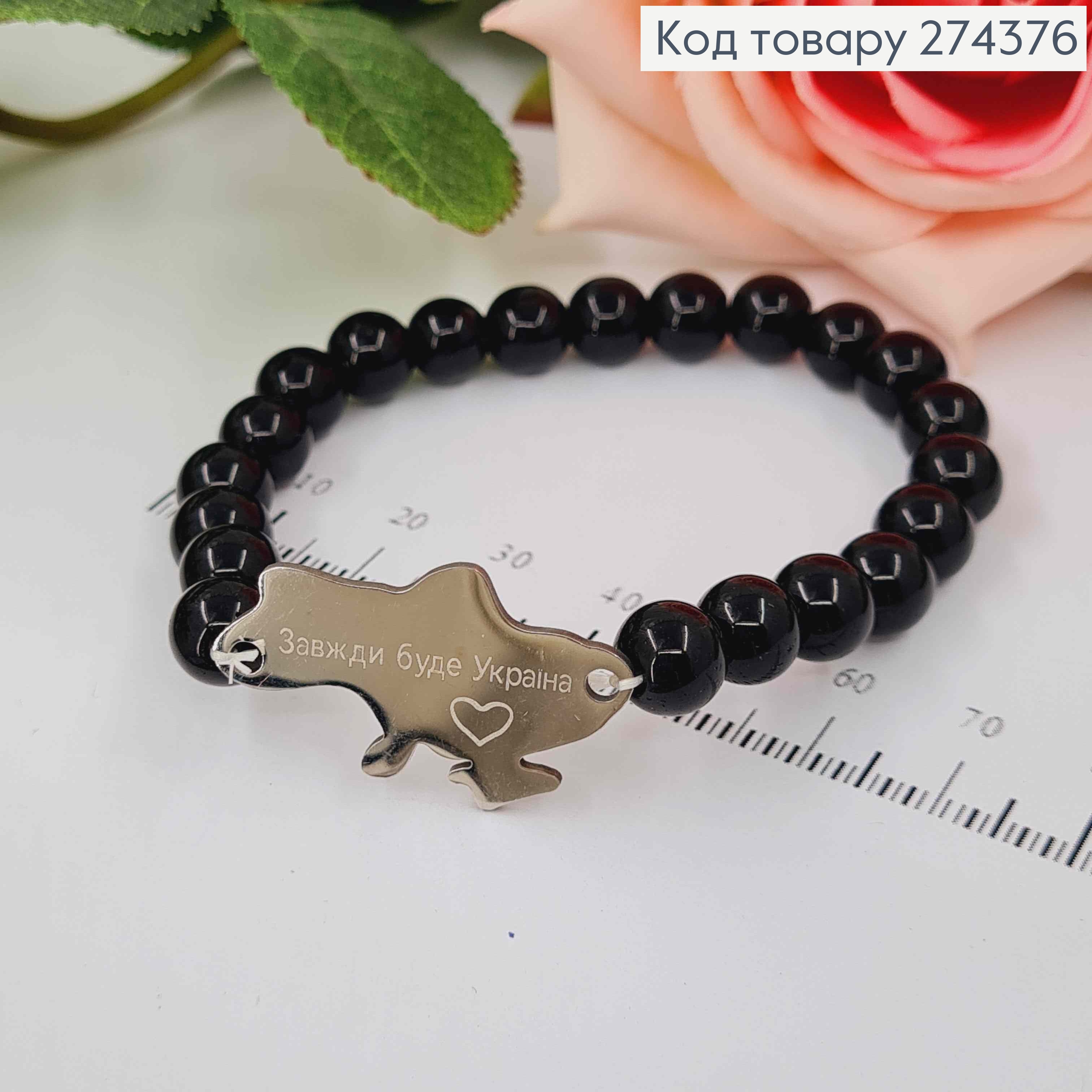Браслет на резинці "Завжди буде Україна" з чорних бусинок