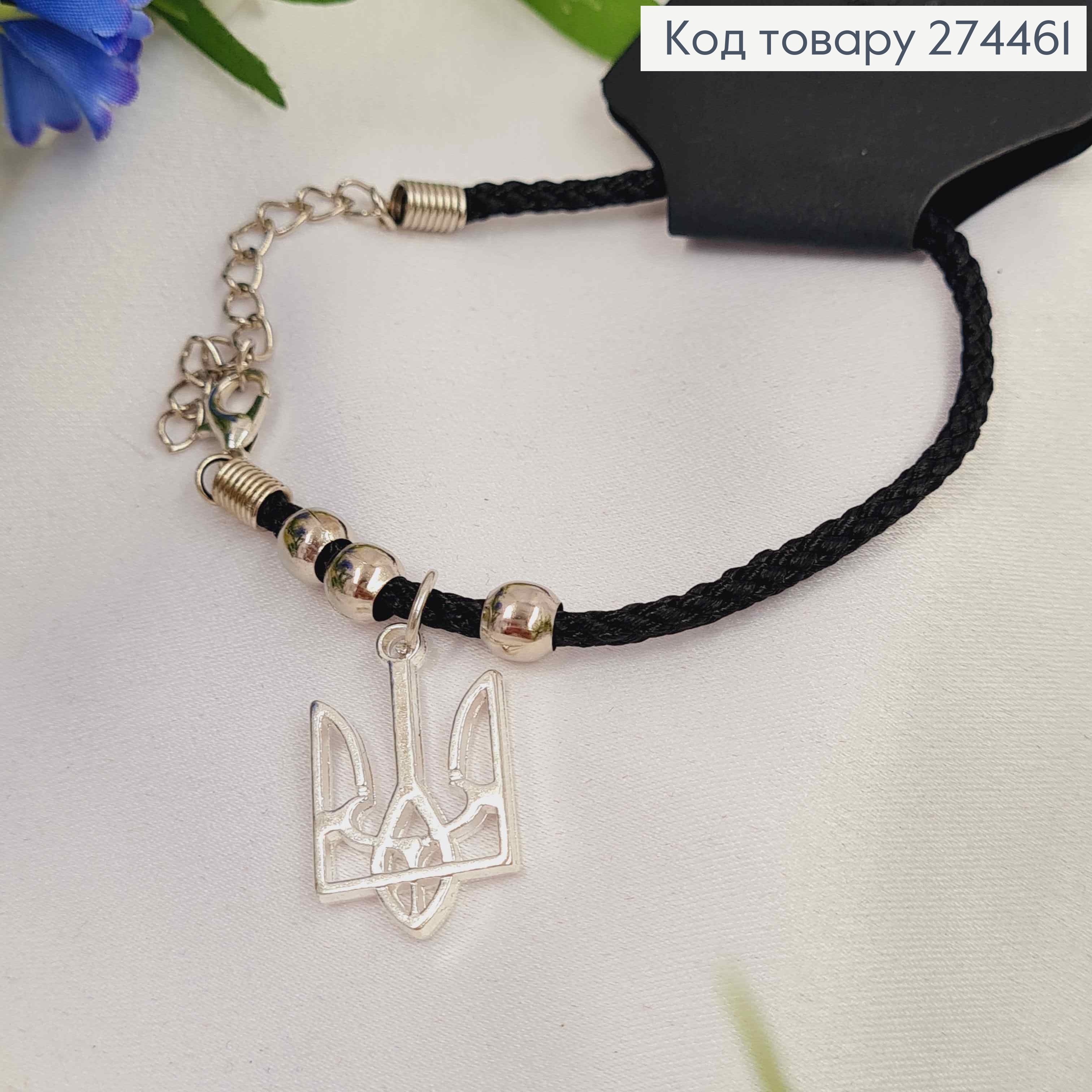 Браслет плетений чорний, з Бусинками та підвіскою Герб, 14+5см