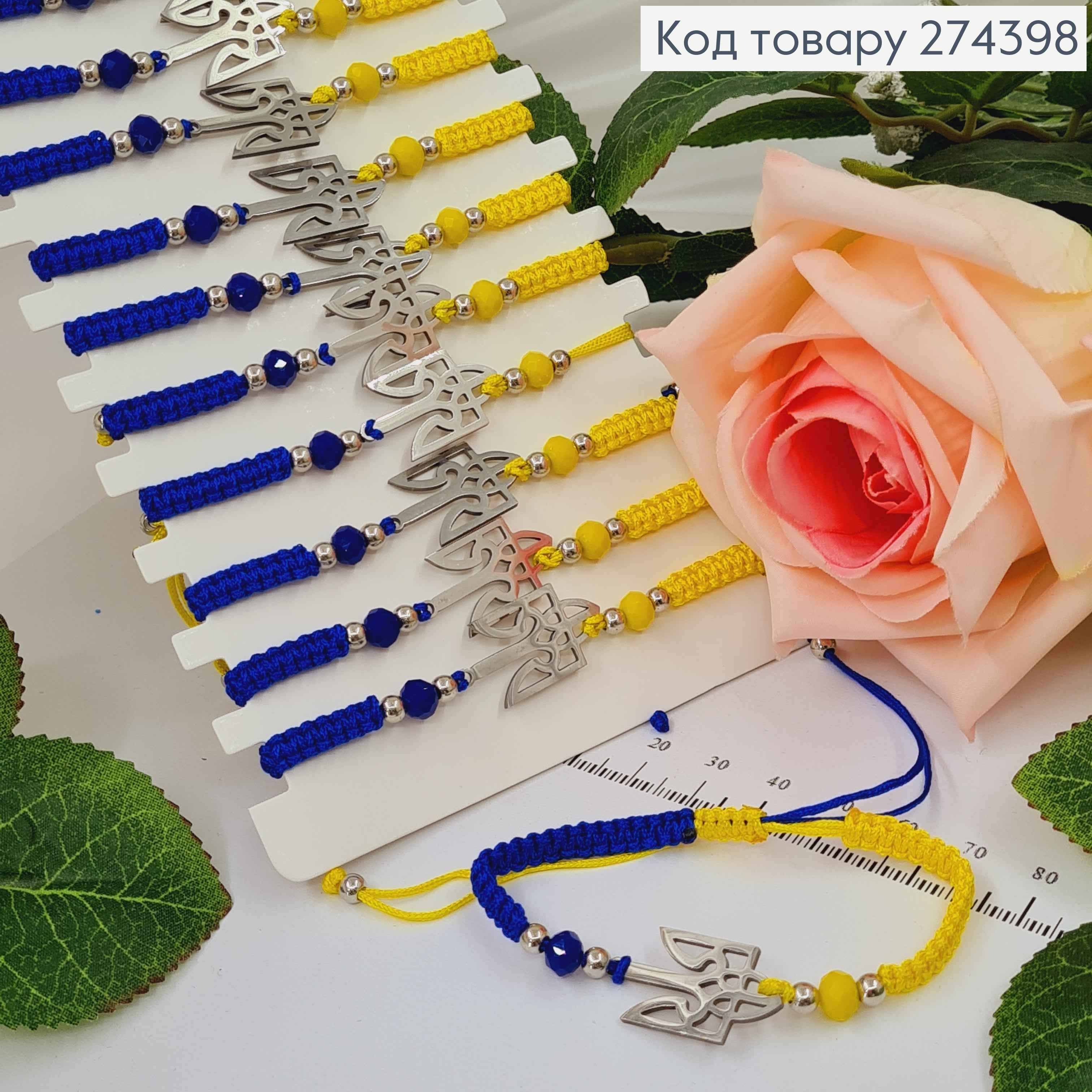Браслет плетений, синьо-жовтий, з Гербом, на затяжці 274301 фото