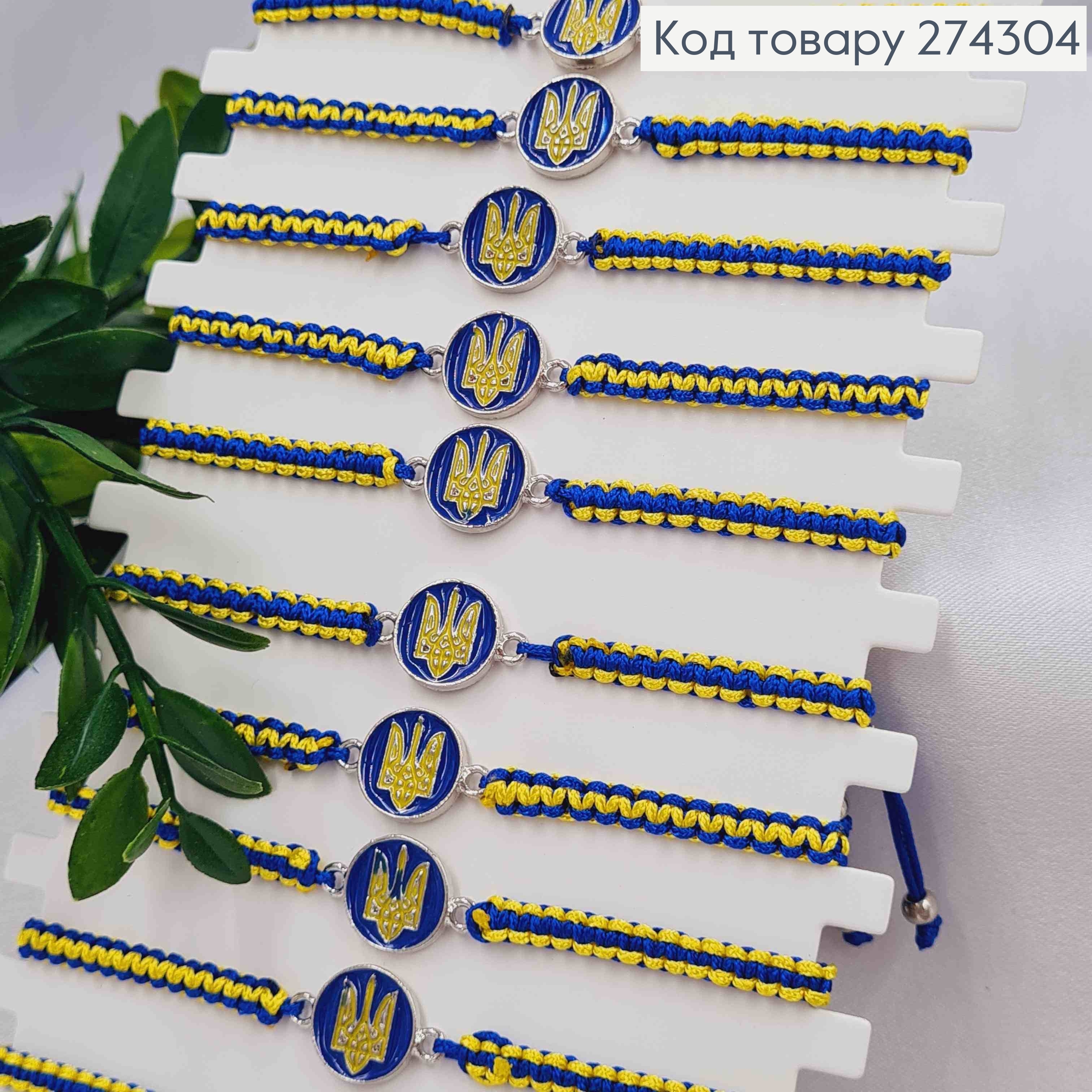 Браслет плетений, синьо-жовтий, з Гербом, на затяжці 274301 фото
