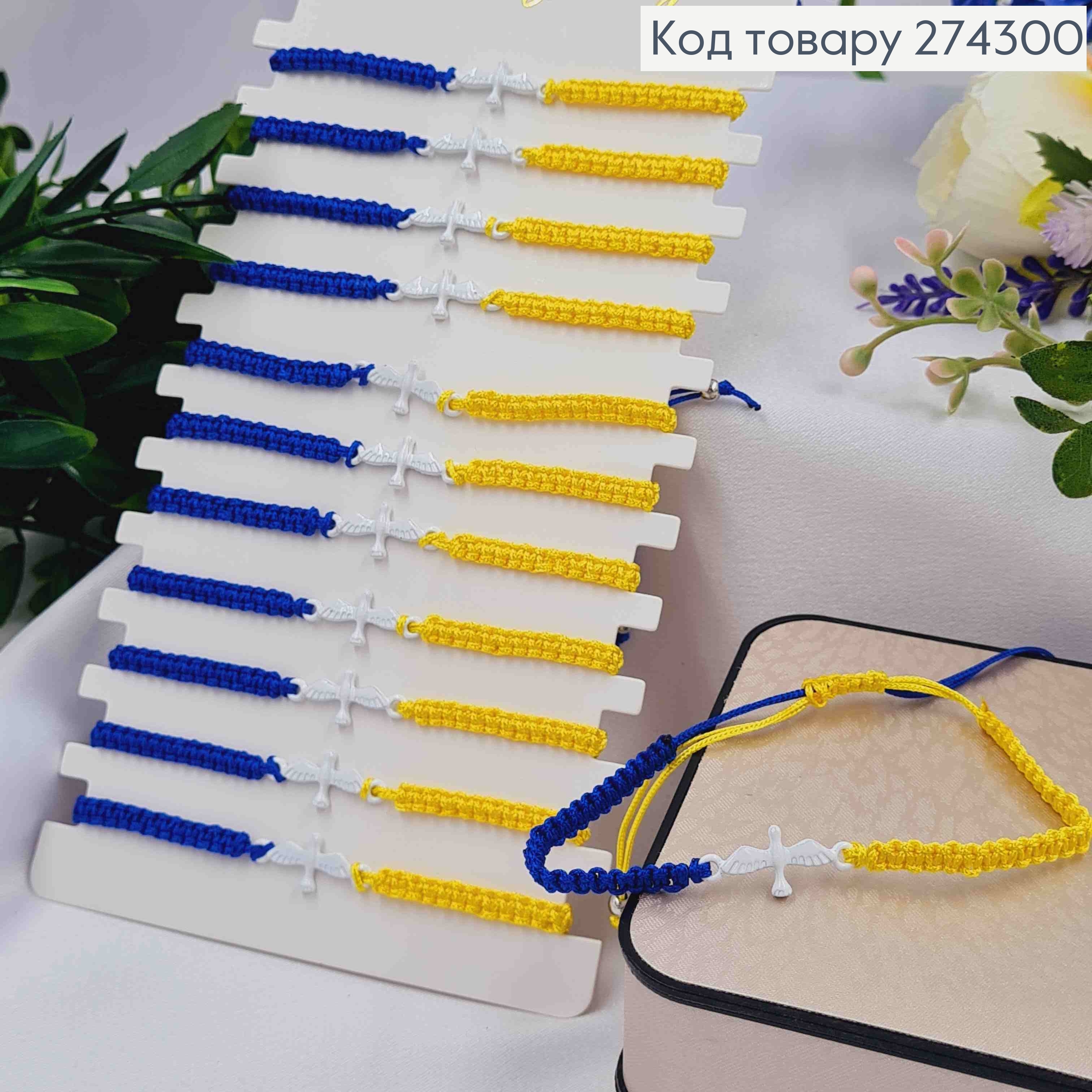 Браслет плетений, синьо-жовтий, СЕРДЕЧКО УКРАЇНА, на затяжці 274404 фото