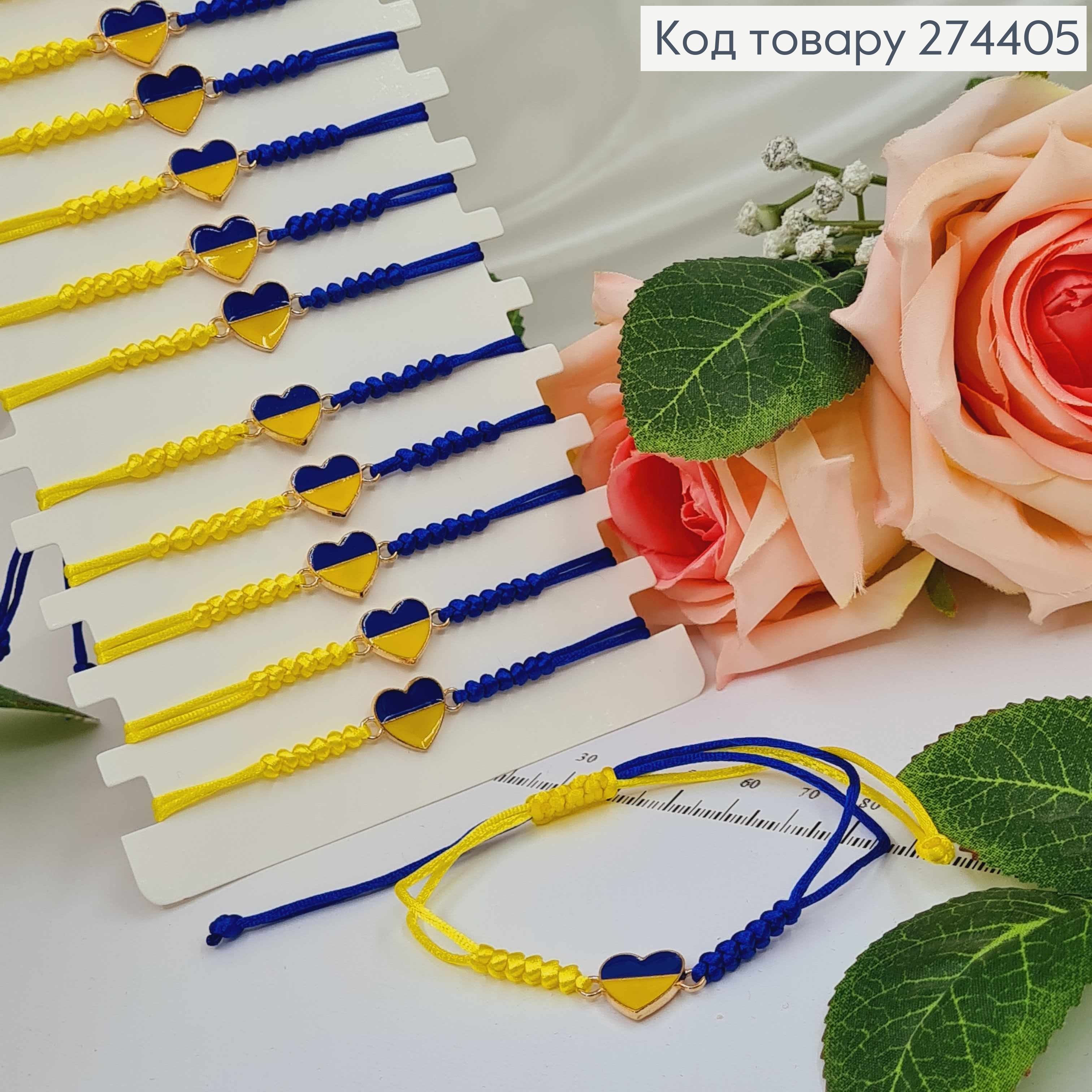 Браслет плетений, синьо-жовтий, СЕРДЕЧКО УКРАЇНА, на затяжці 274404 фото