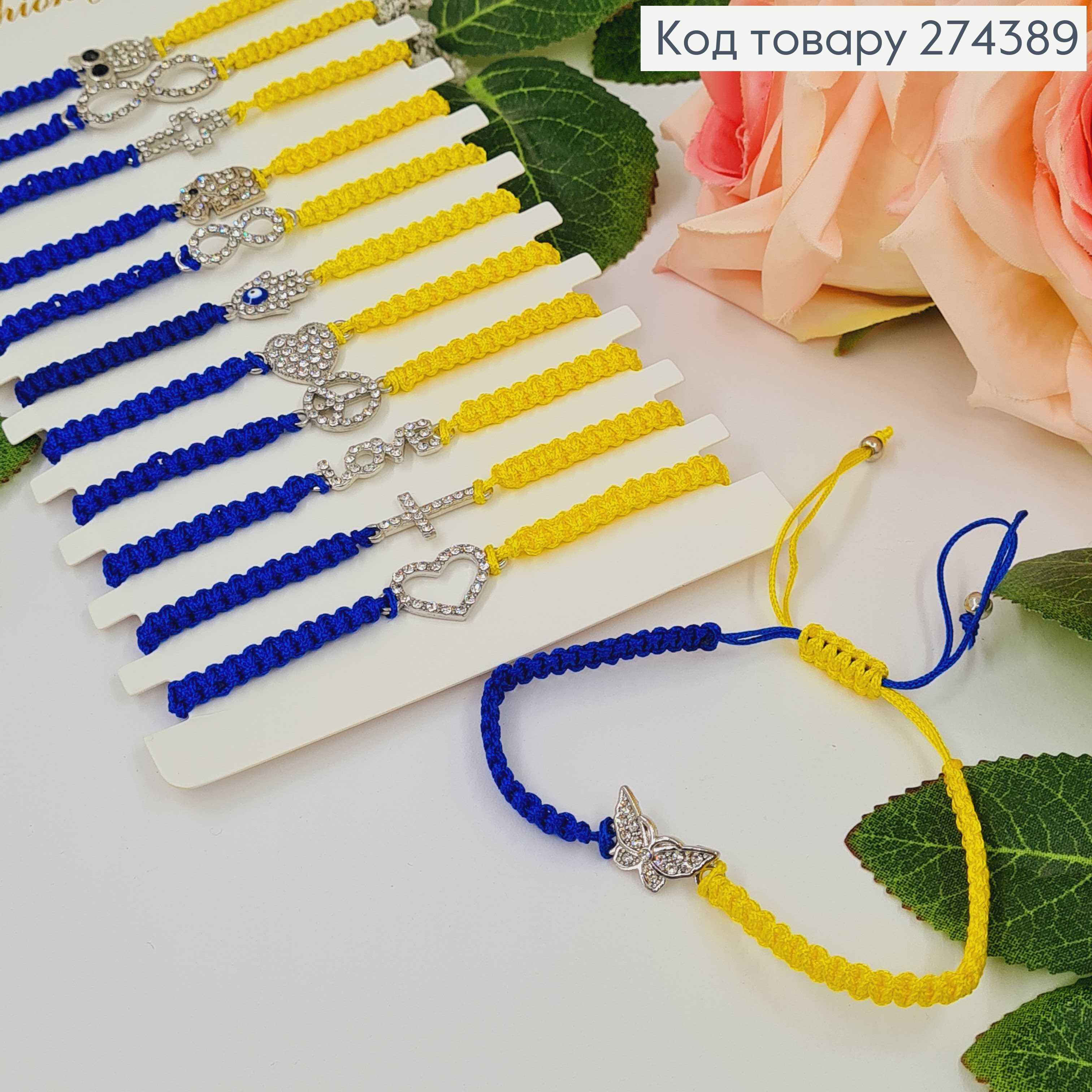 Браслет плетений, синьо-жовтий, СЕРДЕЧКО УКРАЇНА, на затяжці 274404 фото