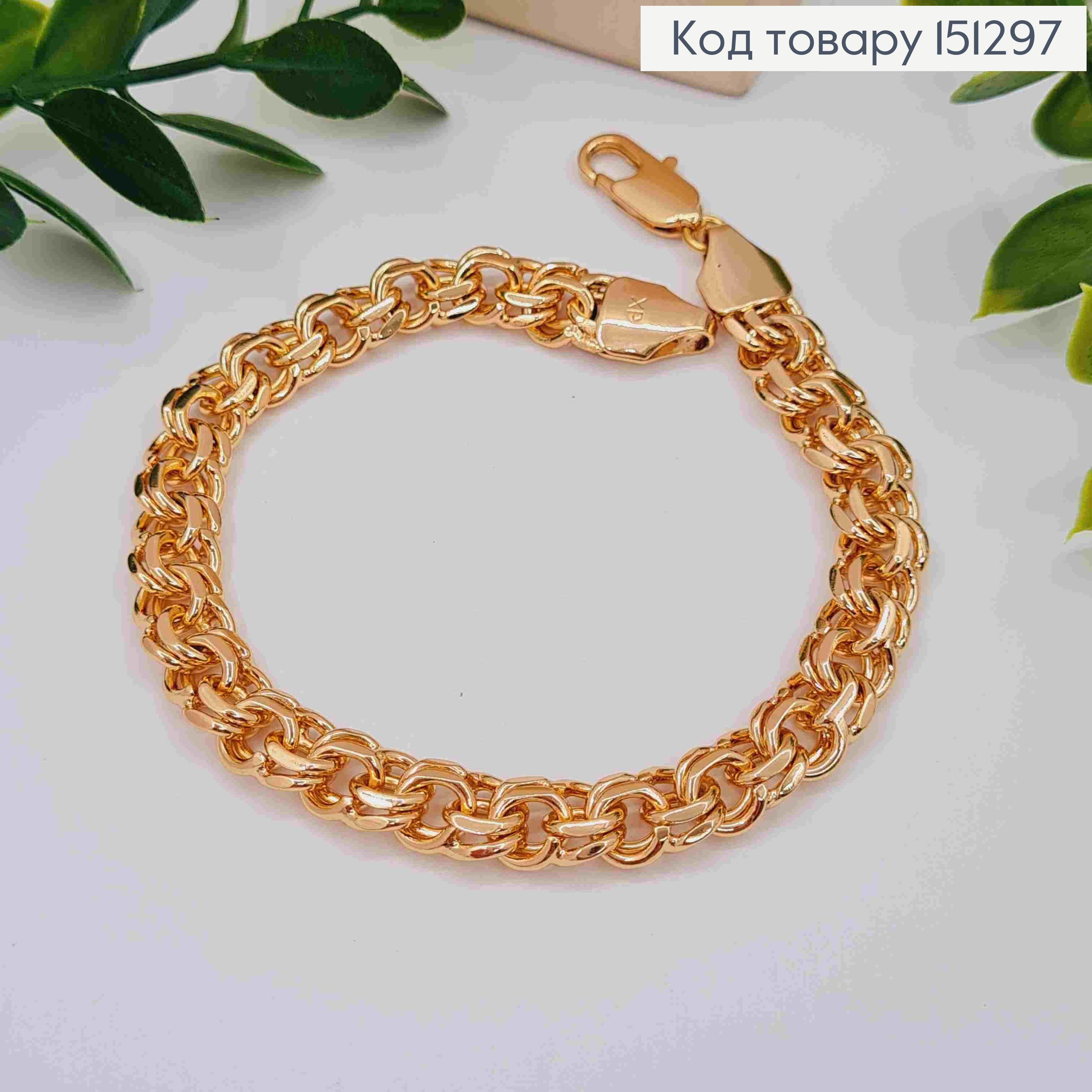 Браслет плетіння БІСМАРК, ширина 8мм, довжина 22см, Xuping 18K