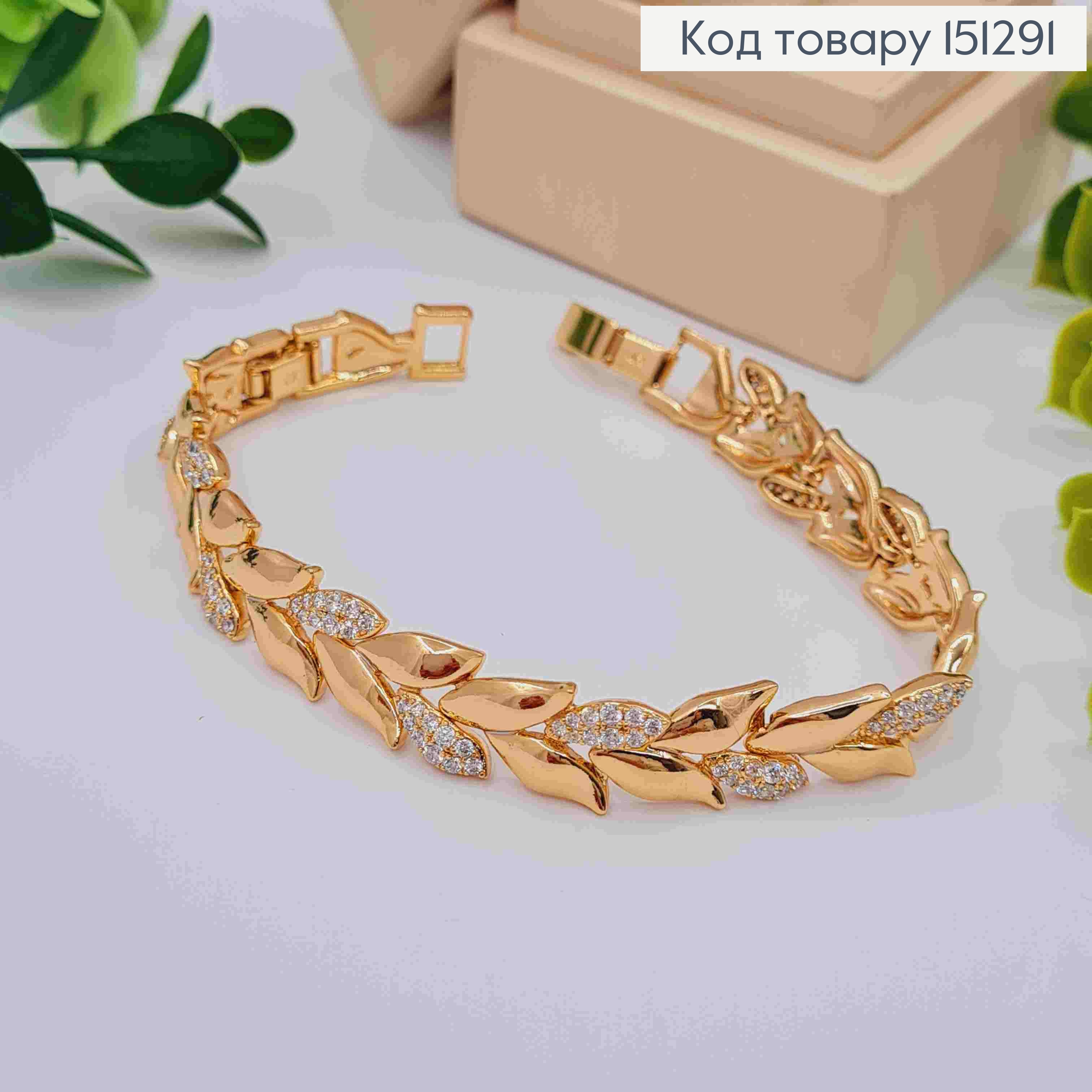 Браслет плетіння пластинками "Листя" прикрашений камінцями, довжина 17+2см, Xuping 18K