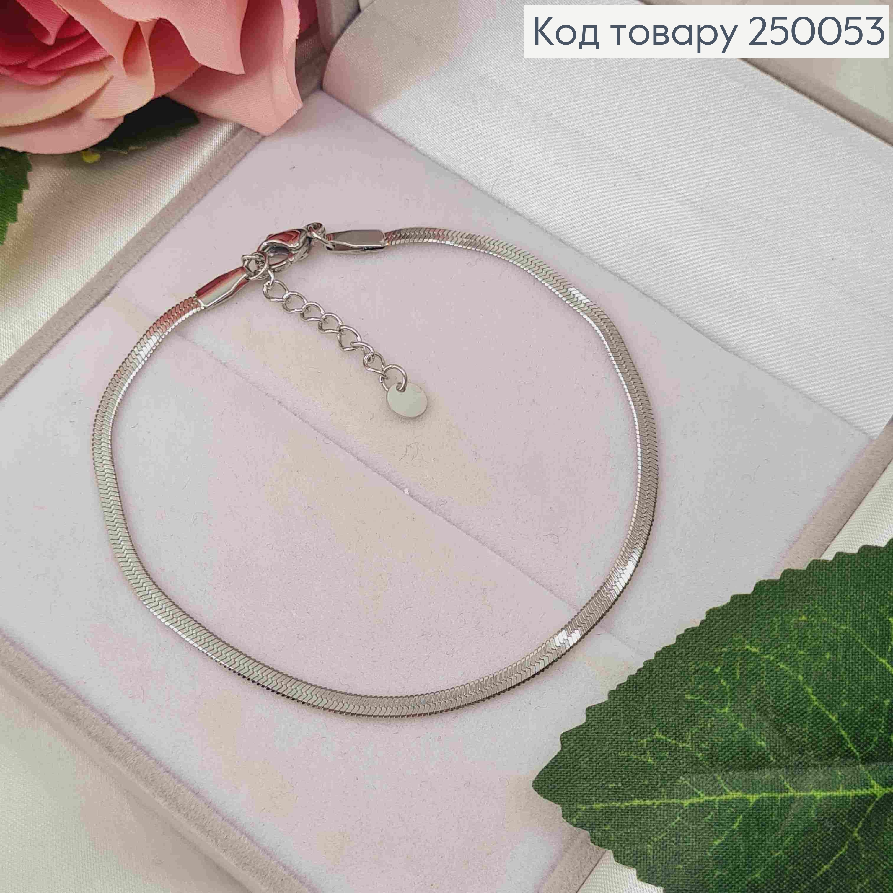 Браслет плоский срібного кольору, ширина 3мм, довжина 19+3см, сталь Stainless Steel