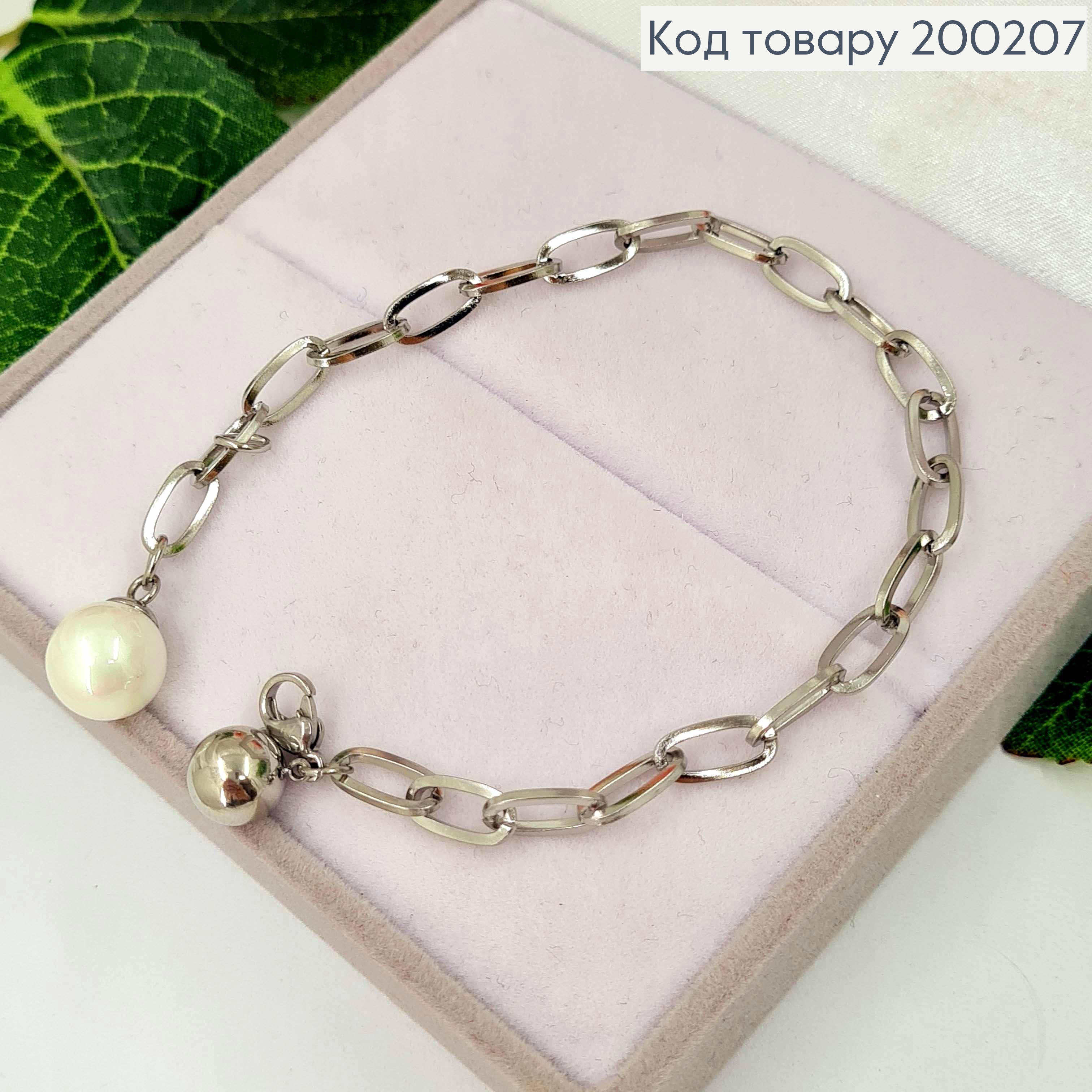 Браслет родований, якірне плетіння, З перлинкою та кулькою, Довжина 19см, Xuping