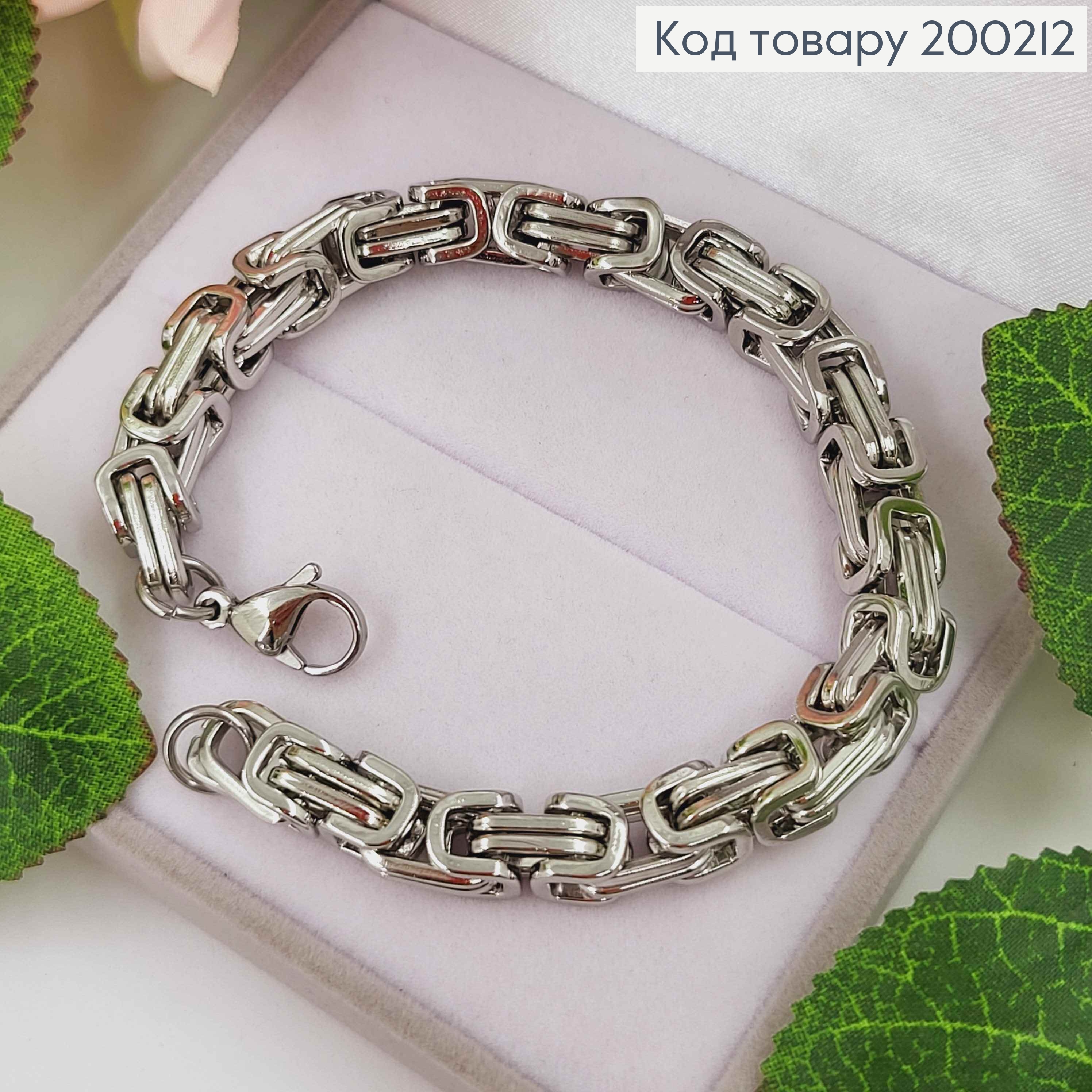 Браслет родований, об'ємний, плетіння бісмарк, довжина 20см