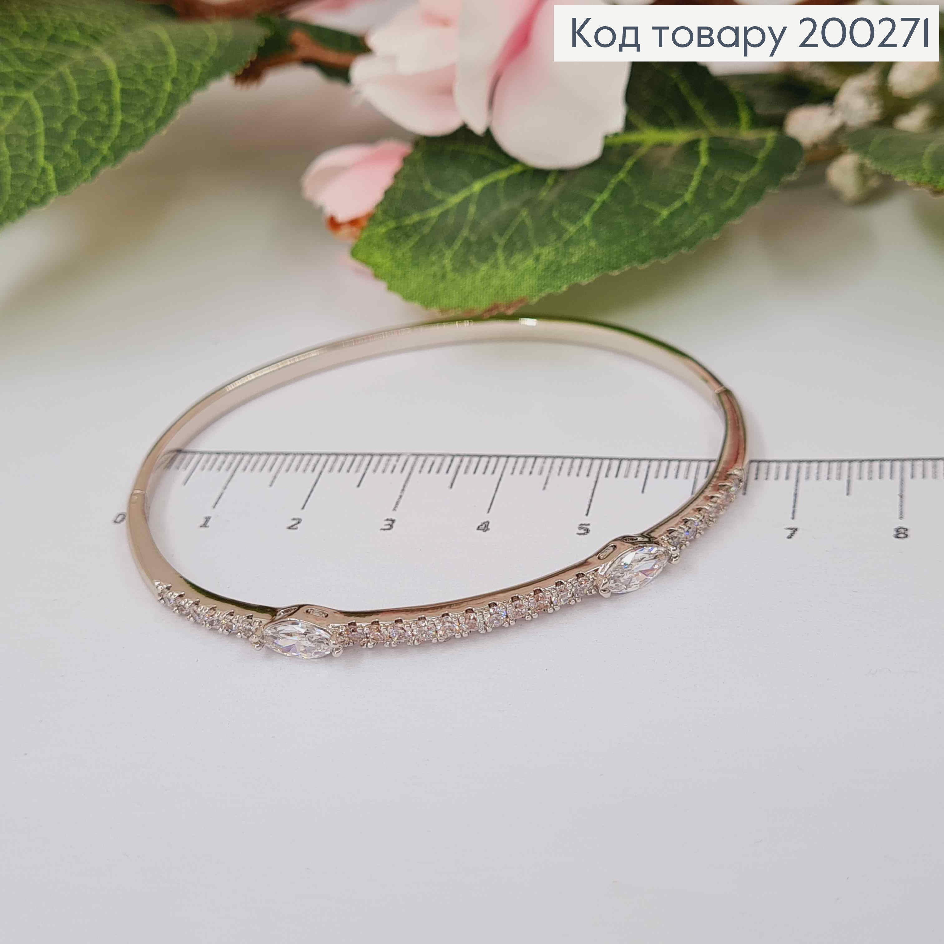Браслет родований Овальний з Блискучими камінцями, діаметр 6см, довжина 19см, Xuping 200361 фото
