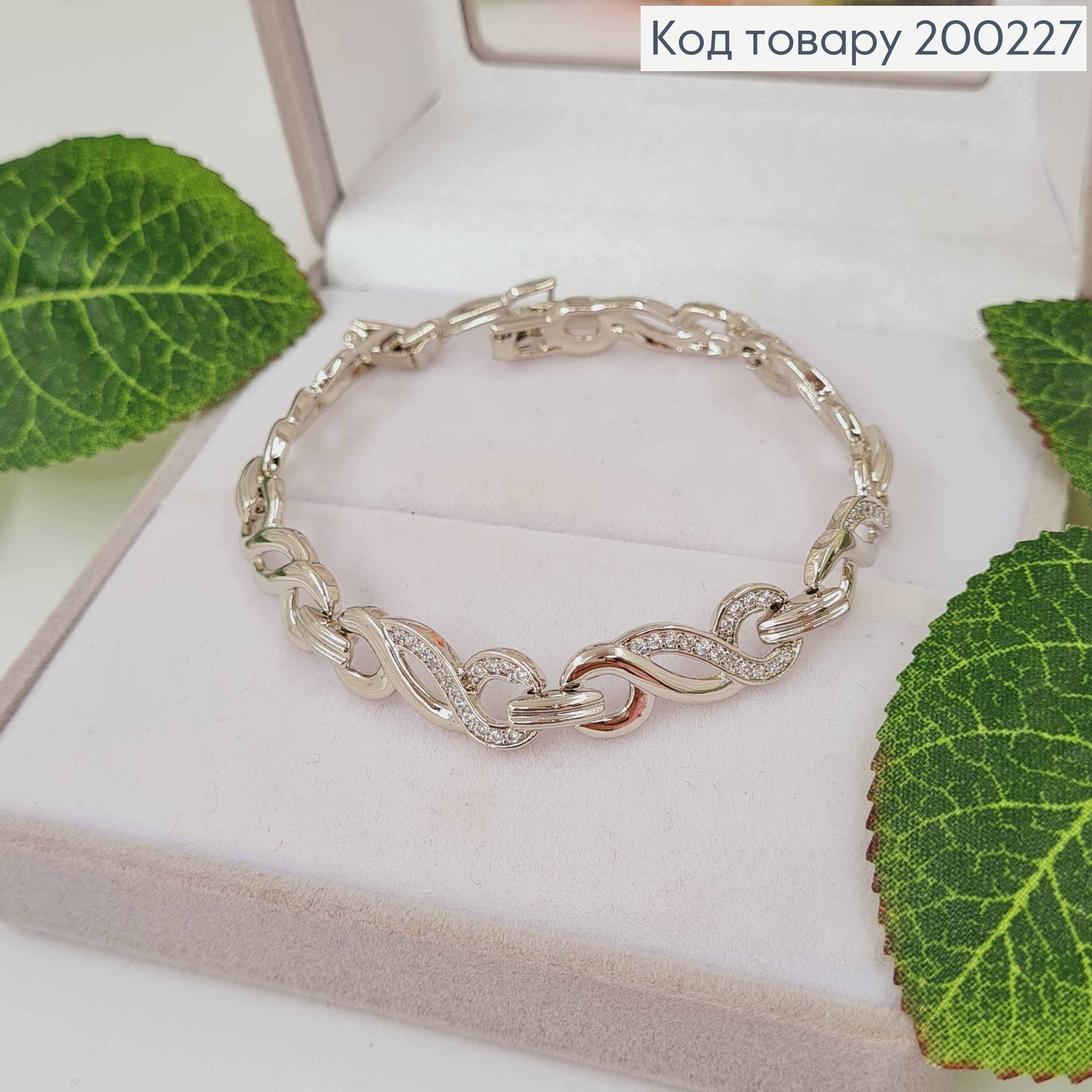 Браслет родований ажурна "Безкінечність" з Блискучими камінцями, довжина 17,5+3см, Xuping 200351 фото