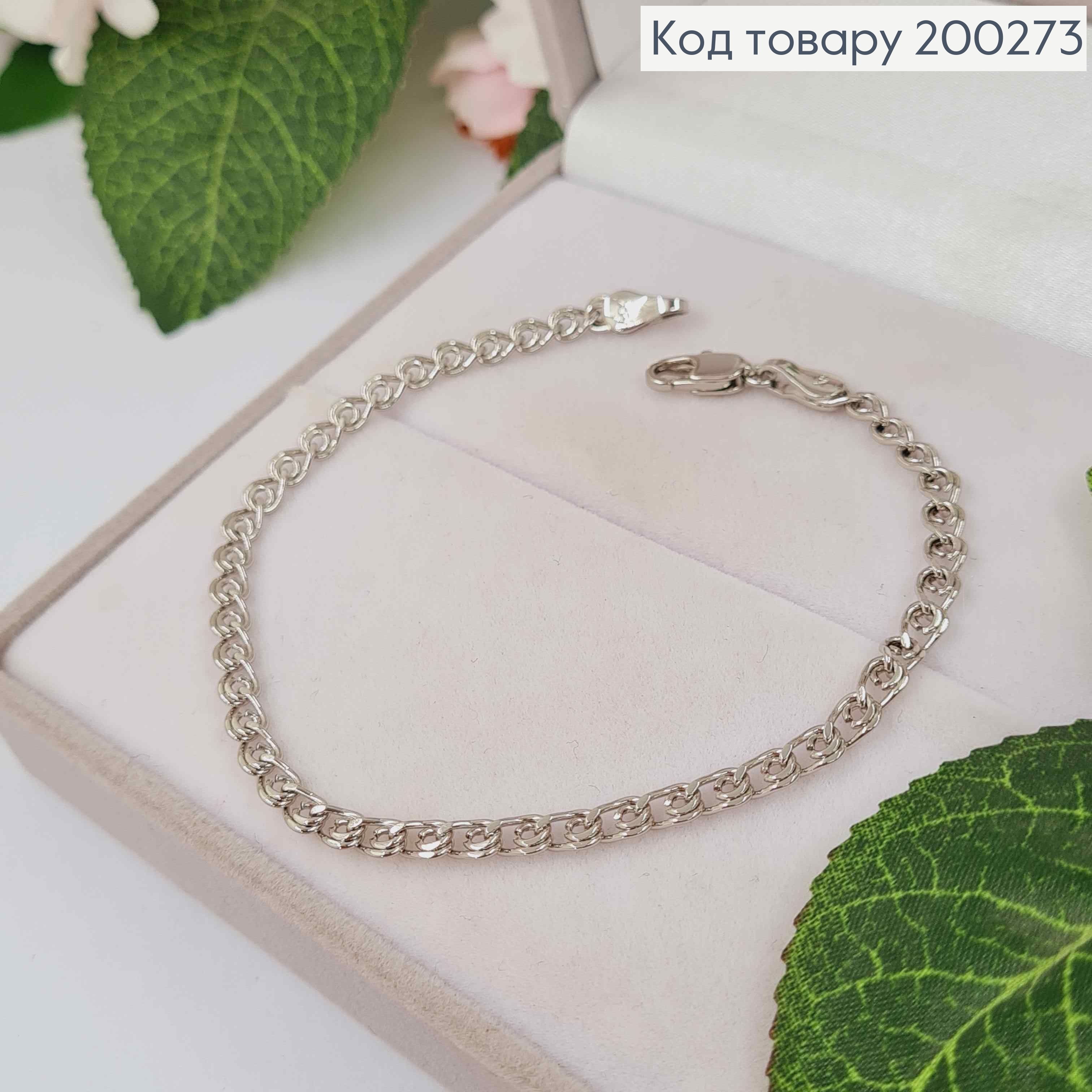 Браслет родований, плетіння Лав, довжина 19см, ширина 3мм, Xuping