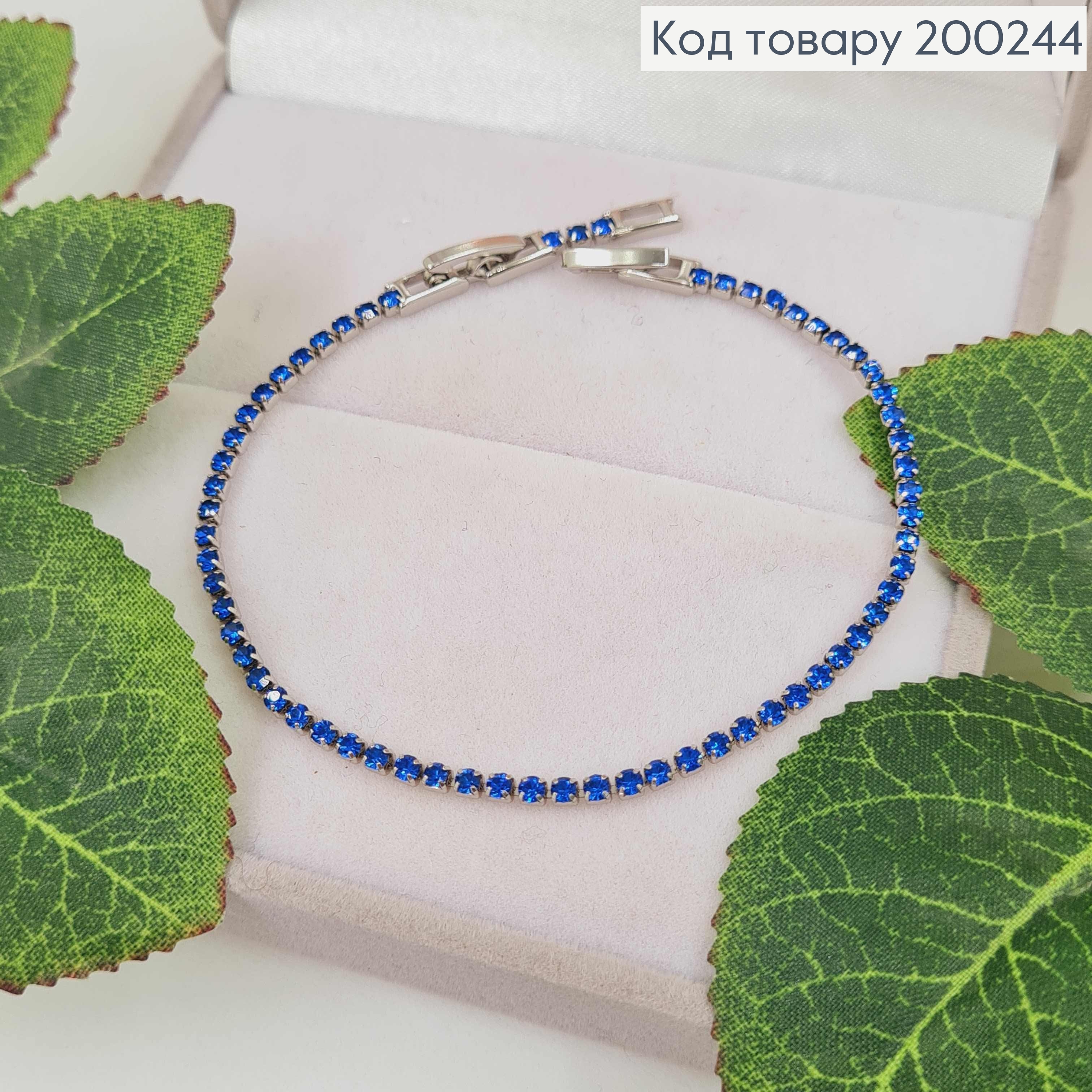 Браслет родований, рядочок з Синіх камінців, шир. 2мм, довж. 17+2см, Xuping