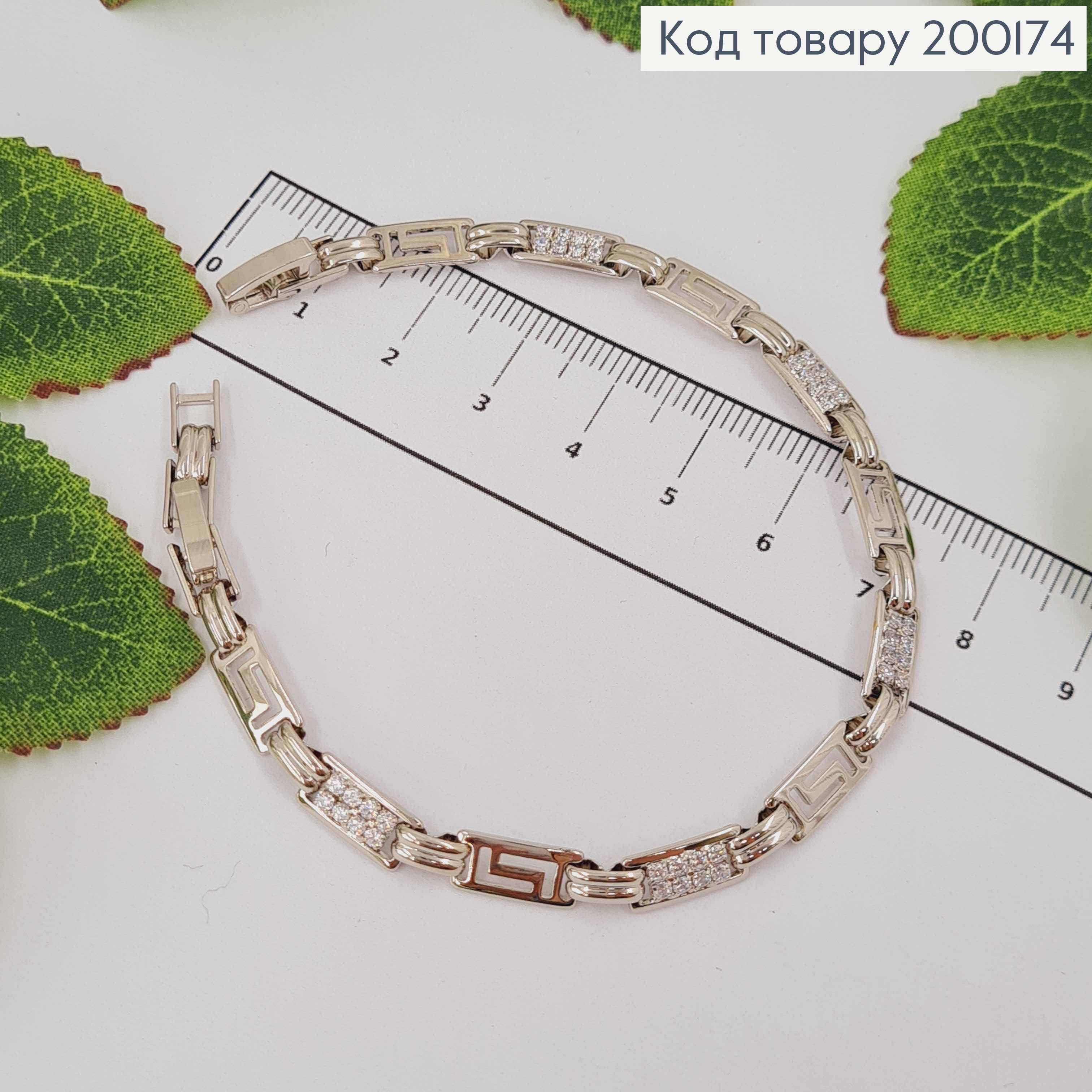 Браслет родований, "Версаче", плетіння пластинками з тисненням, довжина 19см, Xuping 200364 фото