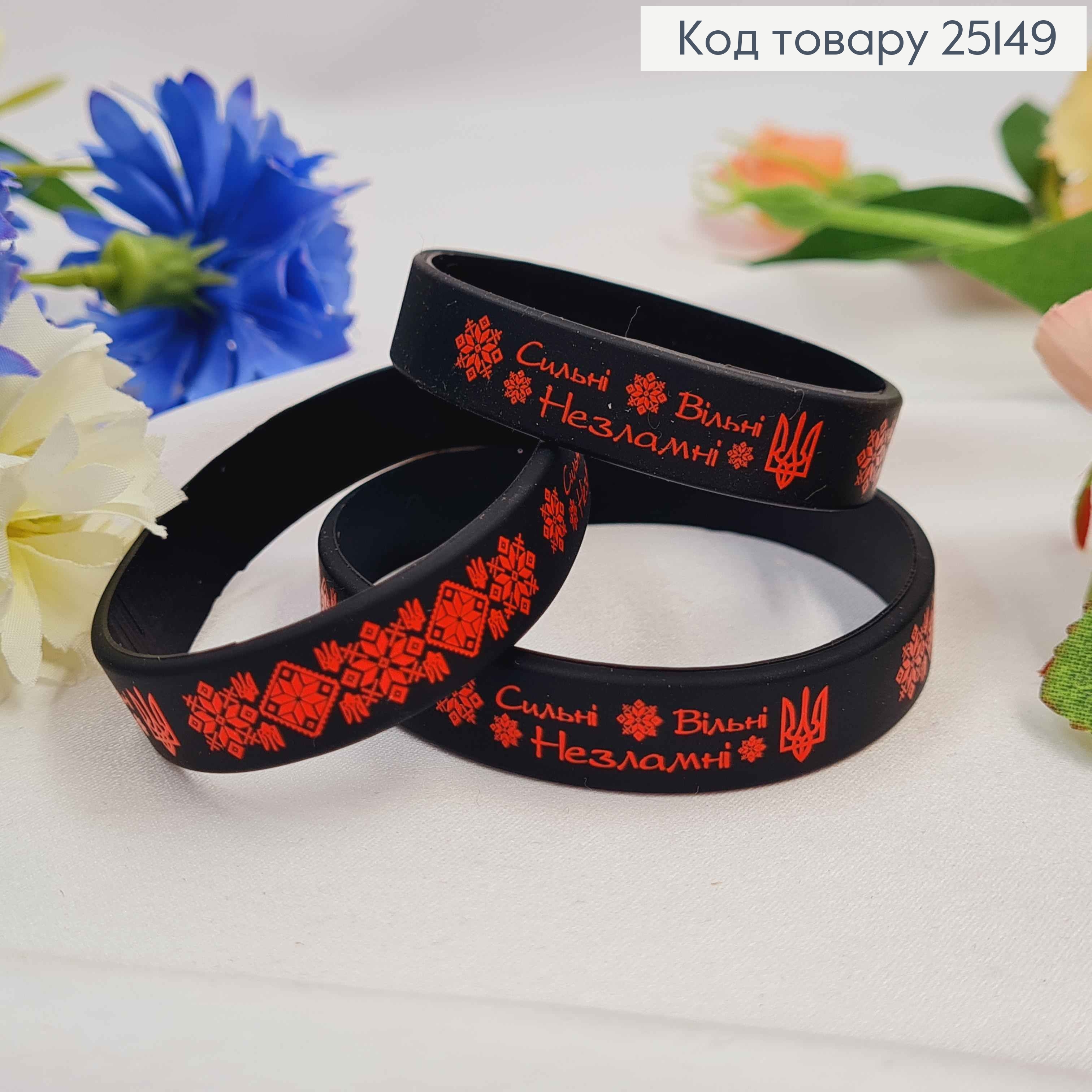 Браслет силіконовий чорний "Сильні! Вільні! Незламні!", з вишивкою, (три розміри), Україна