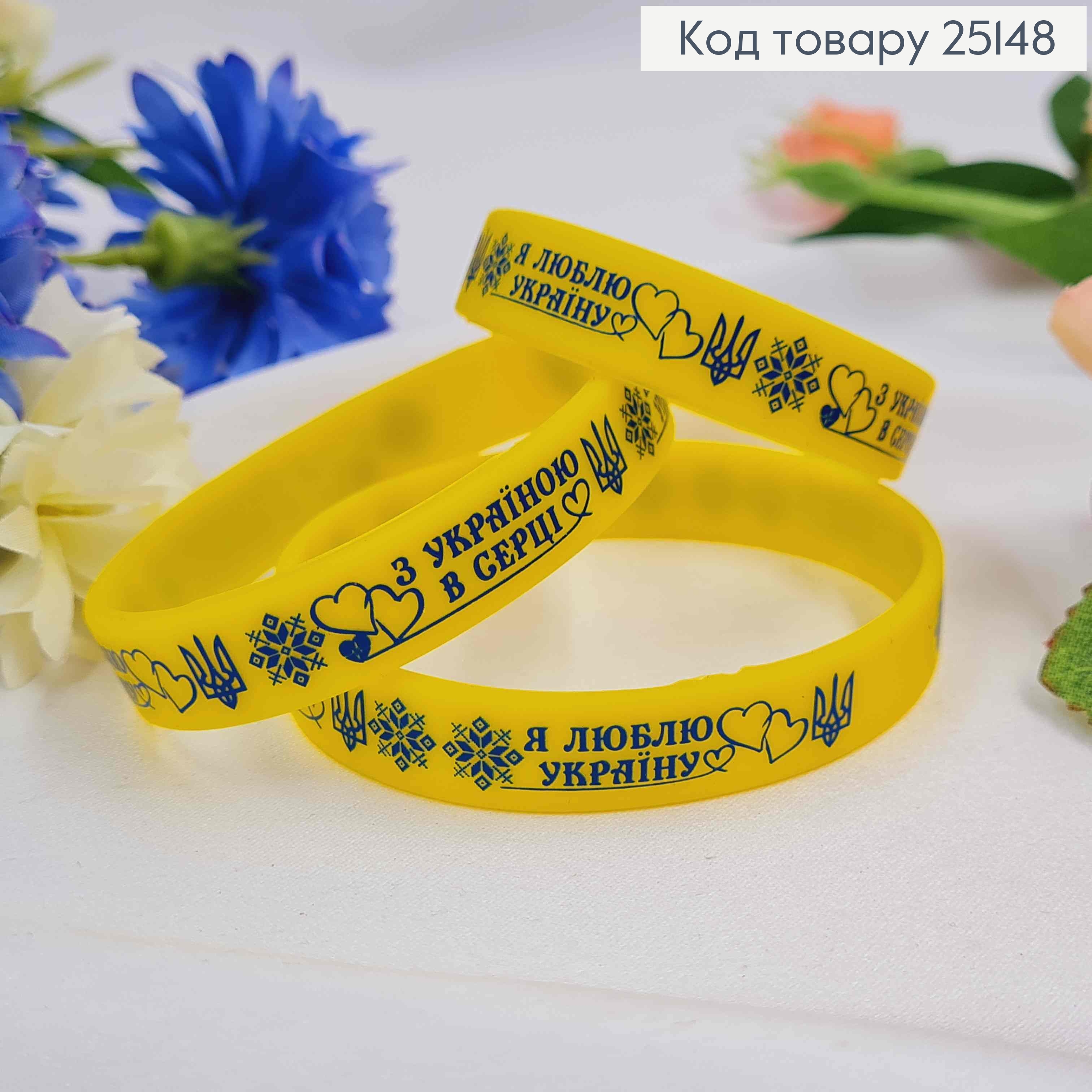 Браслет силіконовий жовтий "З Україною в Серці! Я Люблю Україну", (три розміри),Україна