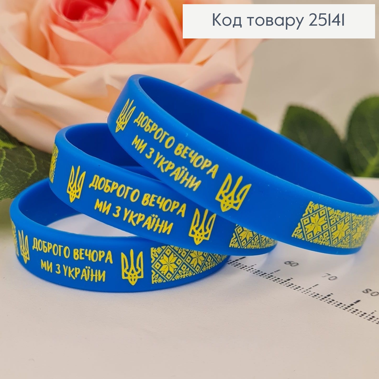 Браслет силіконовий синій "Доброго вечора, ми з України!", Україна
