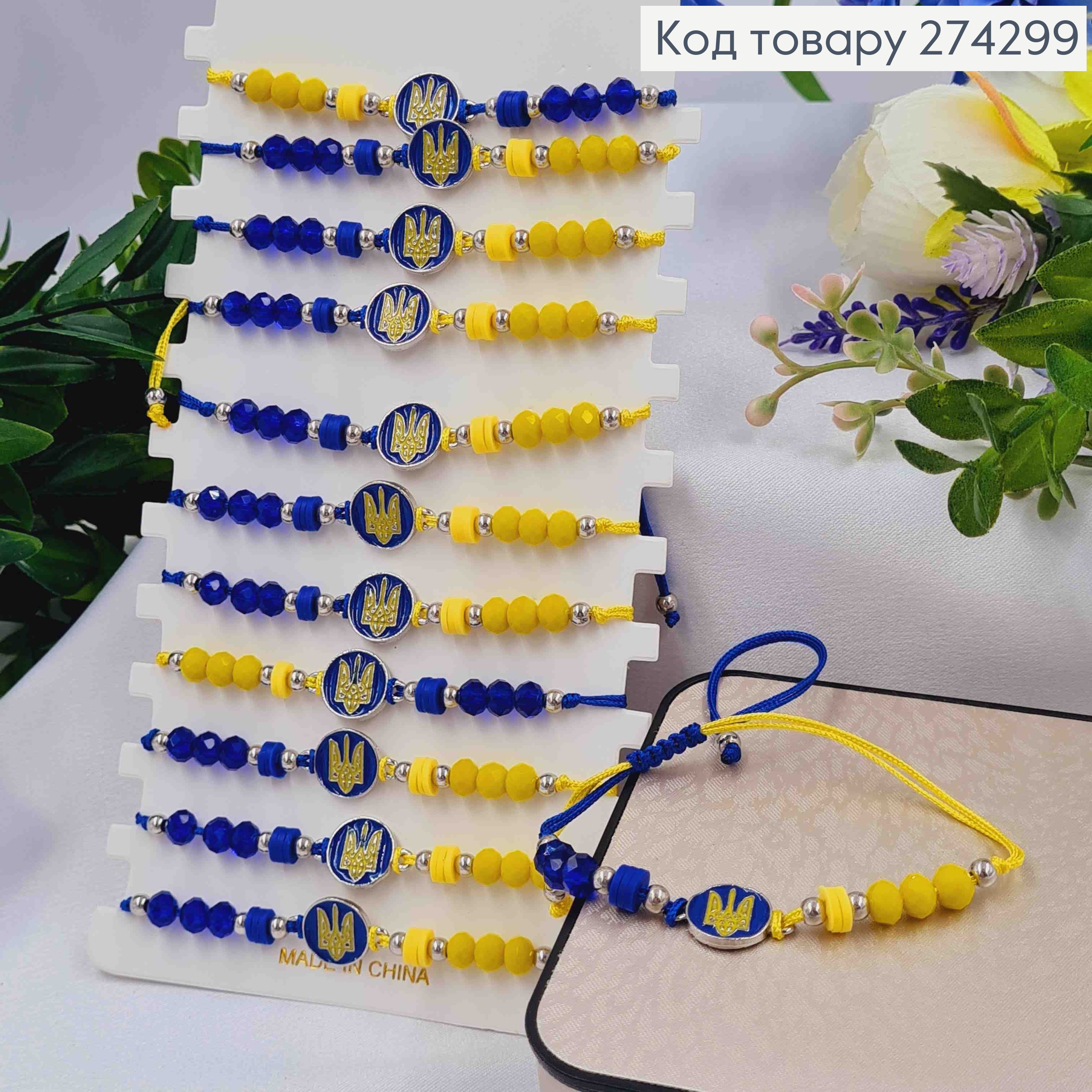 Браслет плетений, синьо-жовтий, з Гербом, на затяжці 274301 фото
