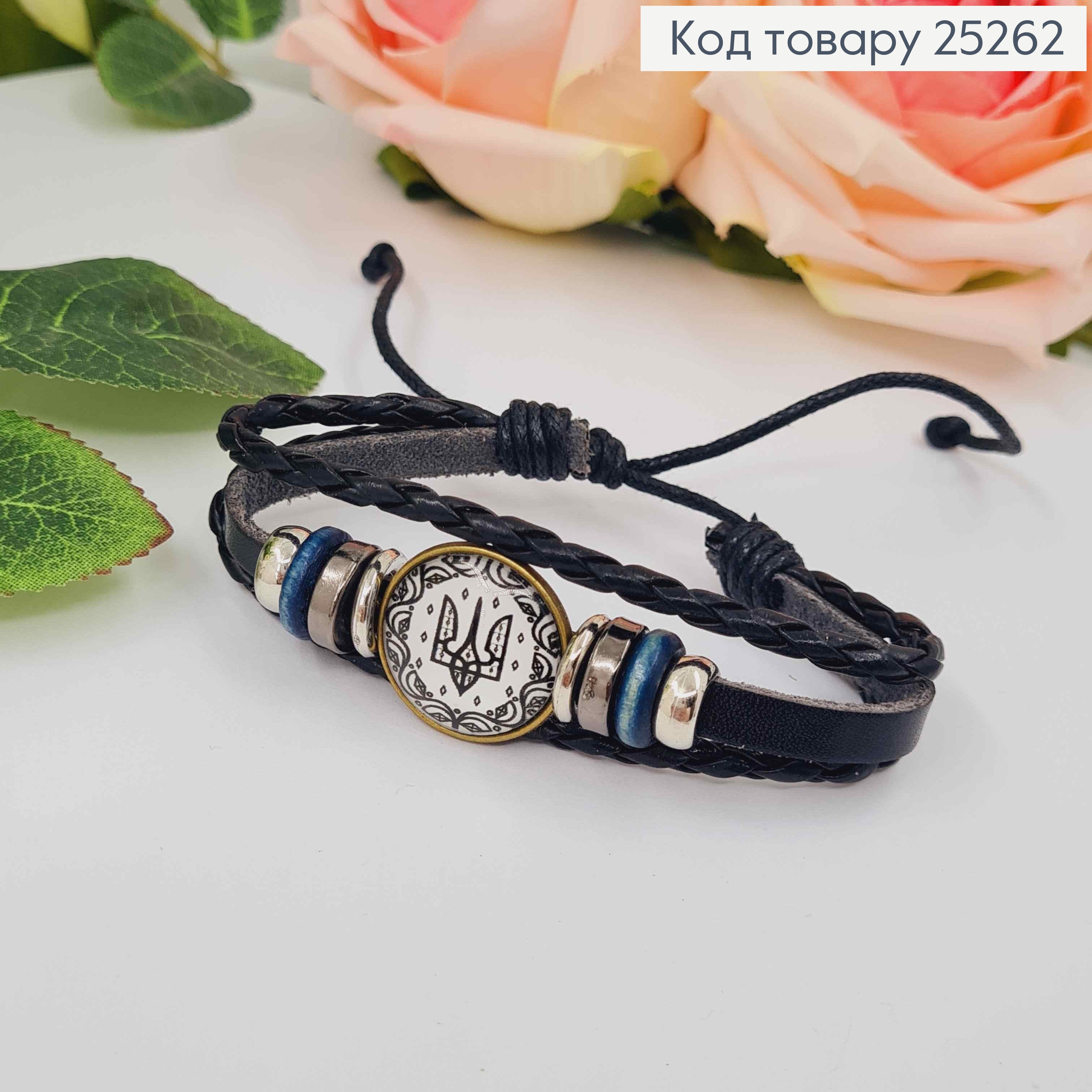 Браслет шкіряний, чорного кольору, З Чорно-білим Гербом та візерунками, з регуляцією розміра