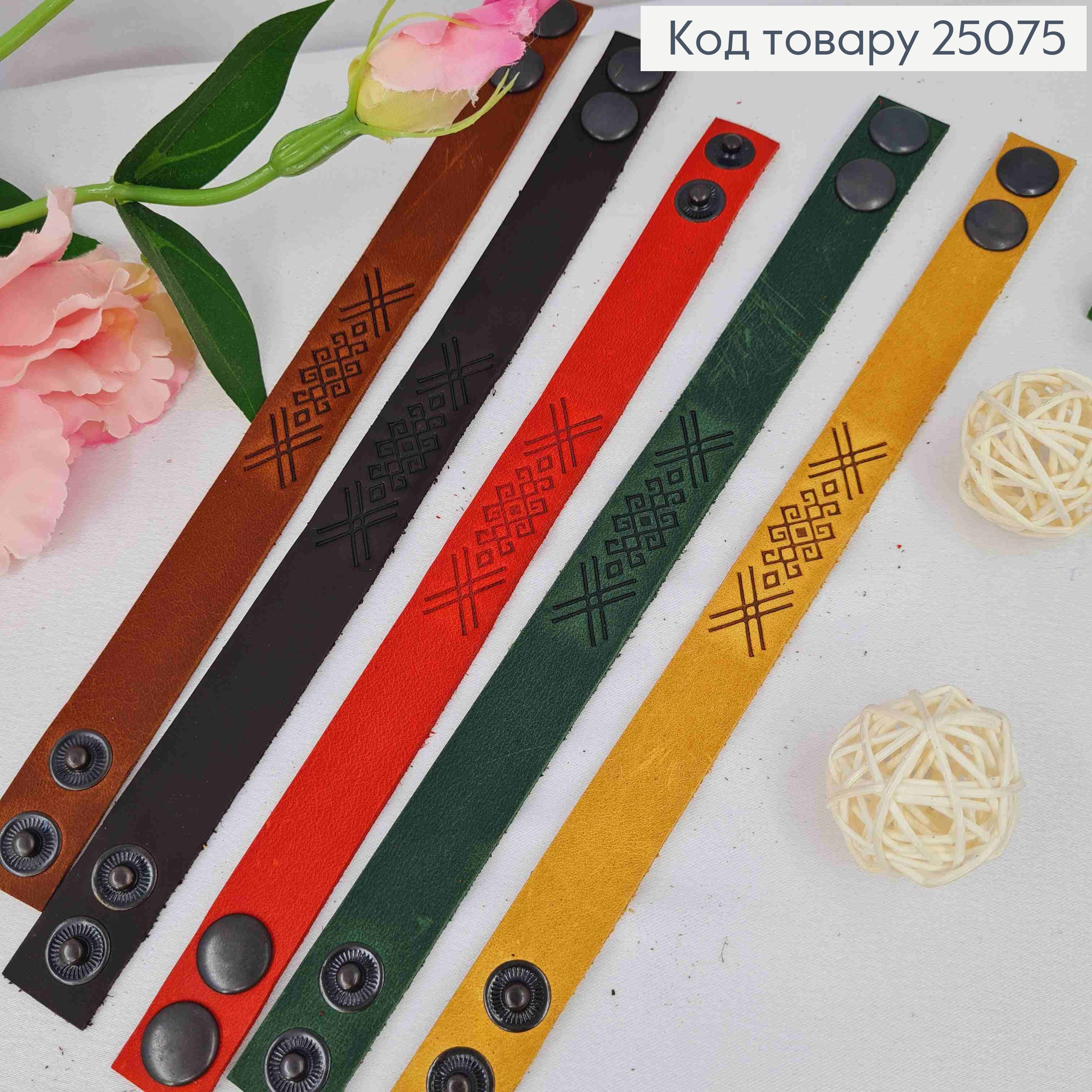 Браслет шкіряний з Орнаментом, з регуляцією розміру, в асорт, 17,19,21см, ручна робота, Україна
