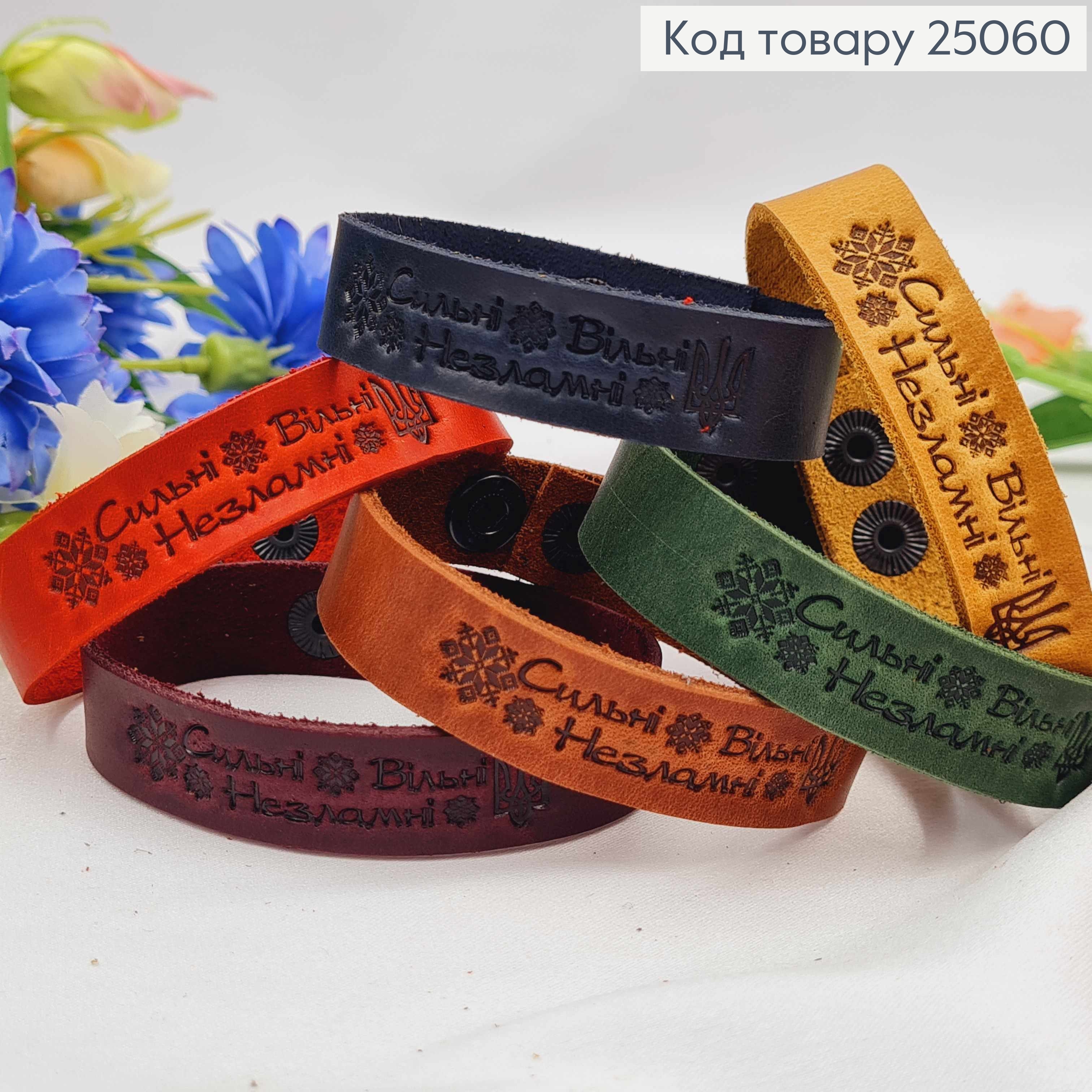 Браслет шкіряний "Сильні! Вільні! Незламні", з регуляцією розміру, 17,19,21см, ручна робота, Україна