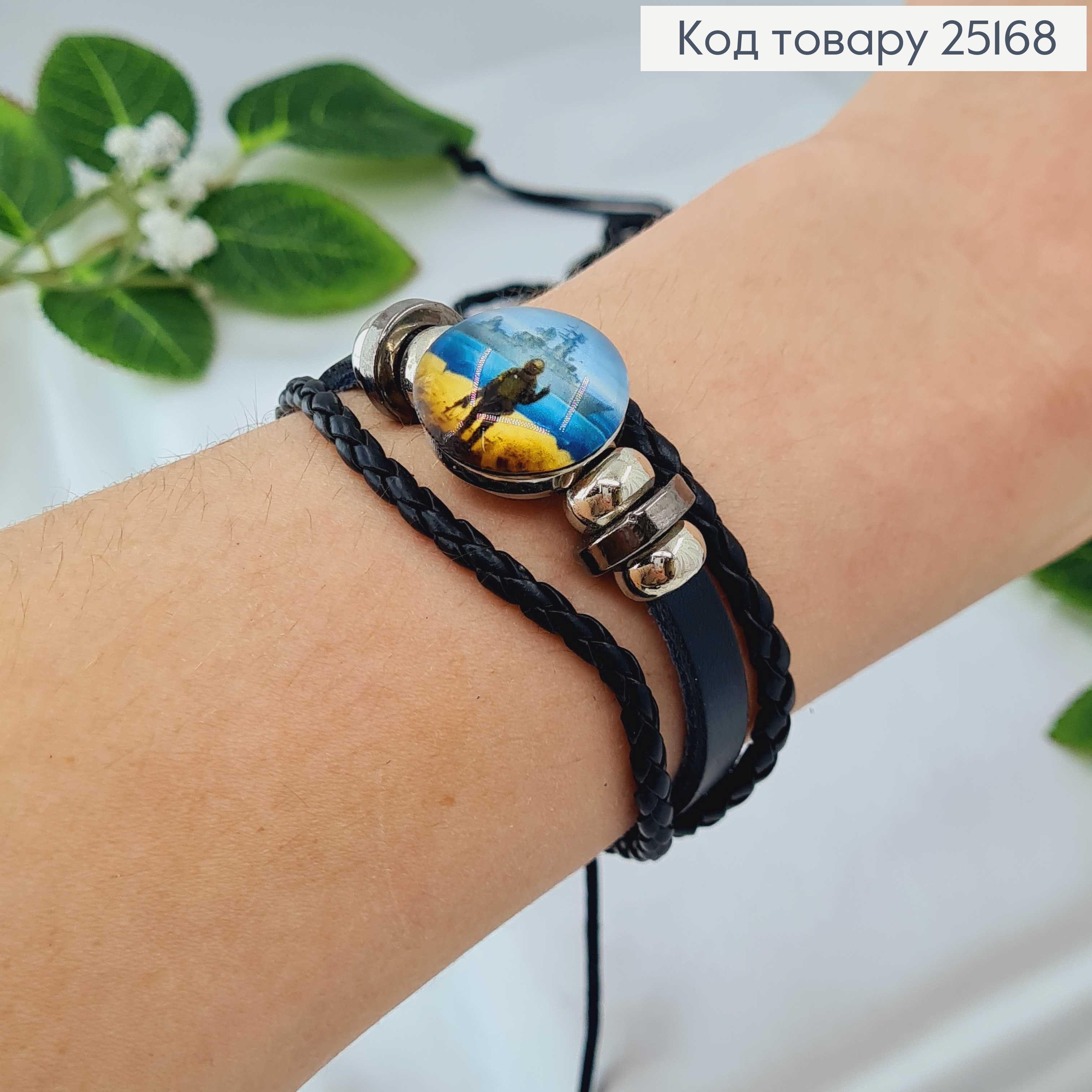 Браслет плетений, синьо-жовтий, з Гербом, на затяжці 274301 фото