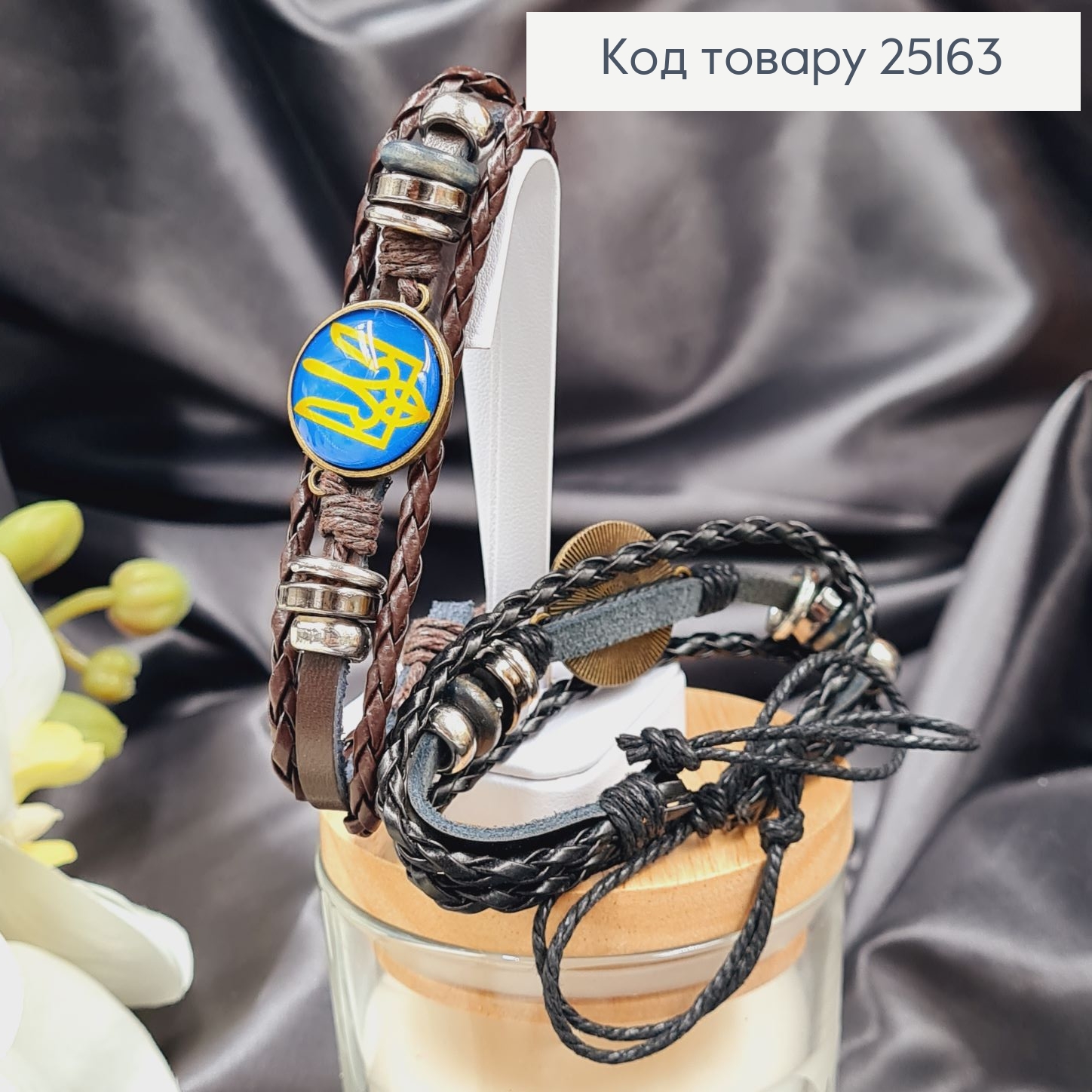 Браслет шнурок Жовто-Синього кольору, З Гербом на монетці та Серцем, на затяжці 274413 фото