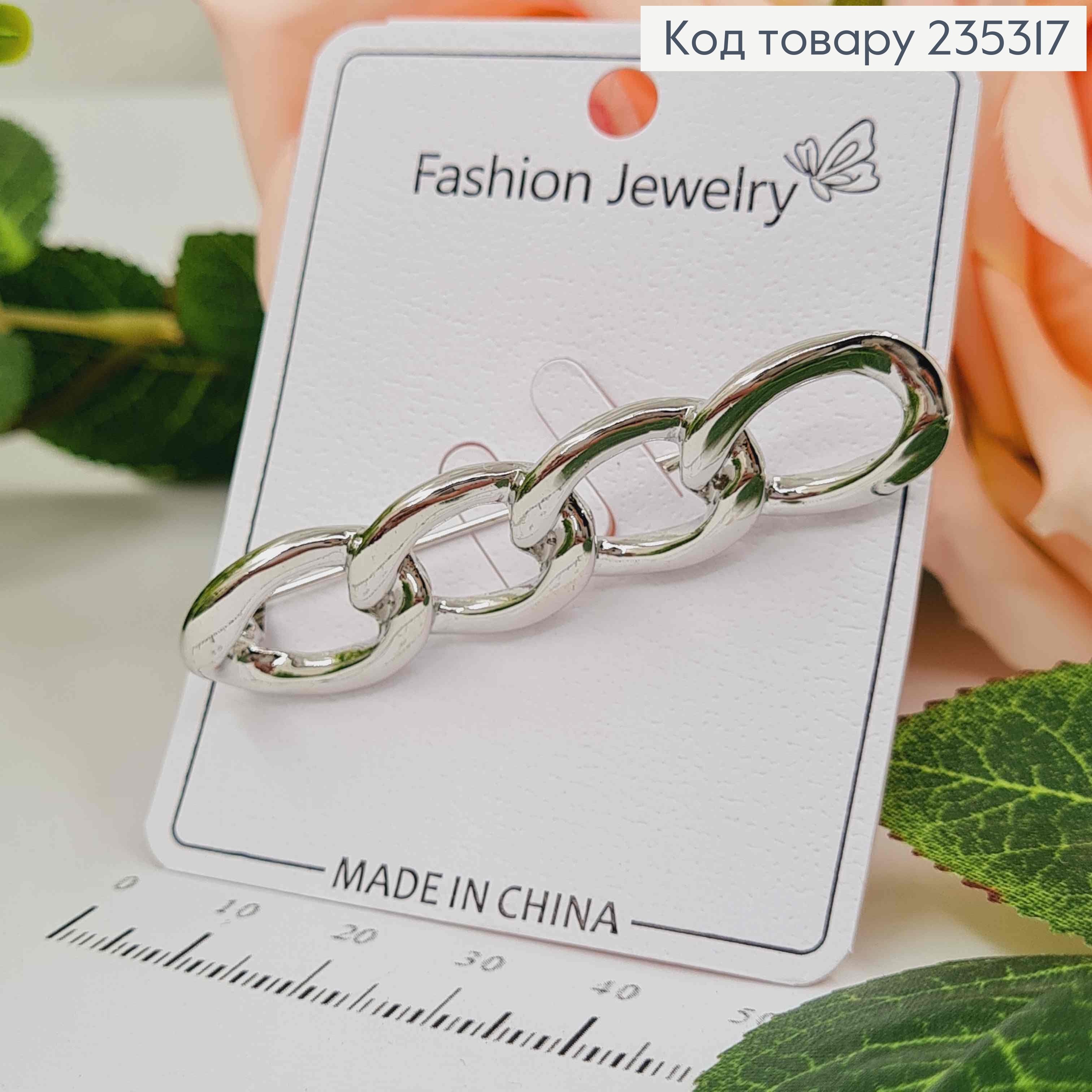 Брошь ЦЕПОЧКА, СЕРЕБРЯНОГО цвета, длина 6см, ширина 1,4см