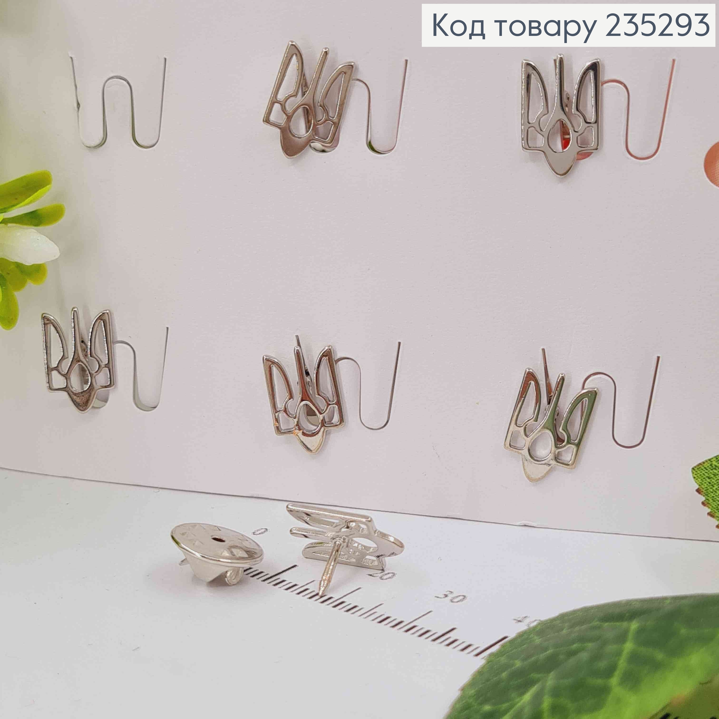 Брошка герб ТРИЗУБ малий, срібного кольору , 1,5*0,9см