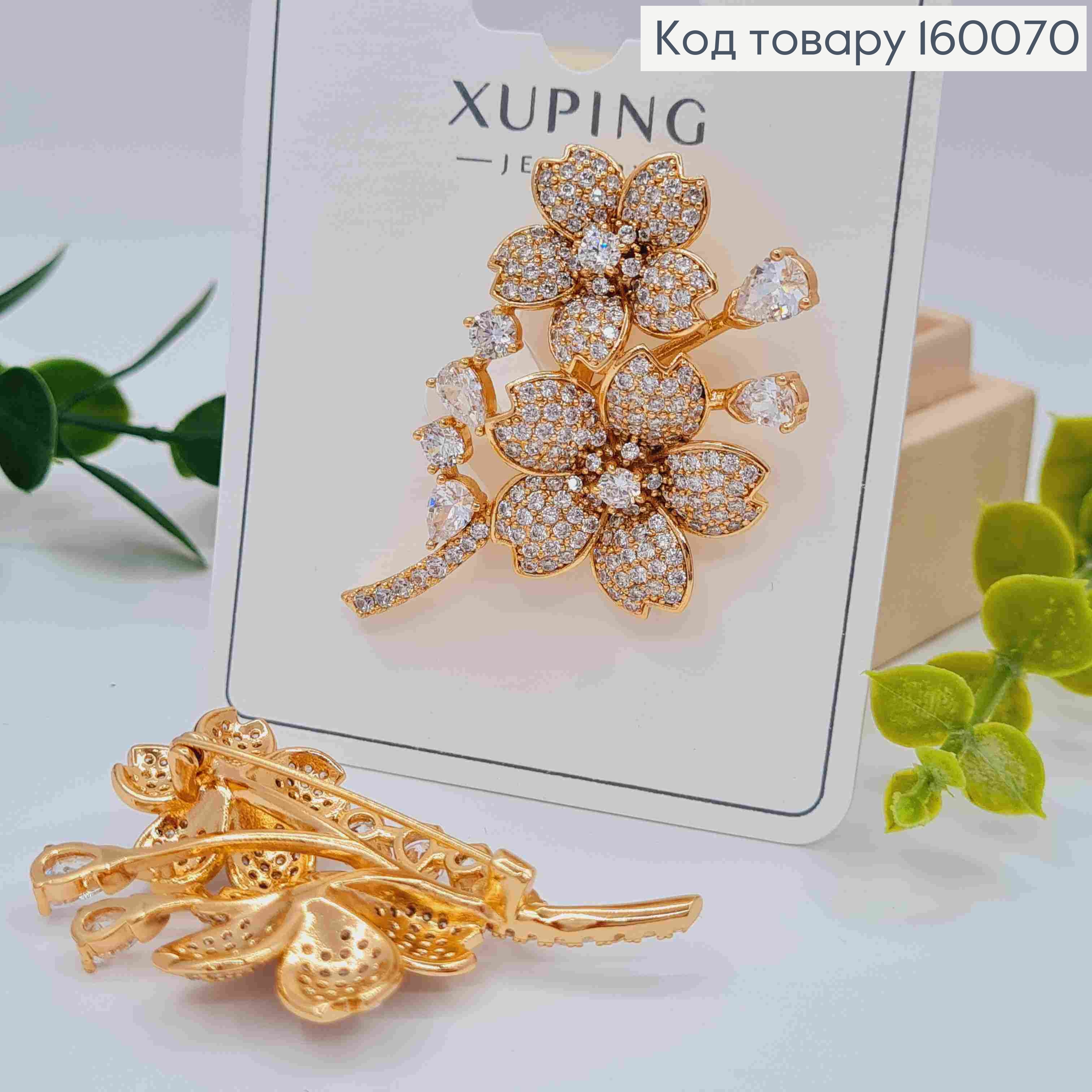 Брошка "Гілочка квітів" прикрашена Блискучими камінцями, 4,9см, Xuping 18к