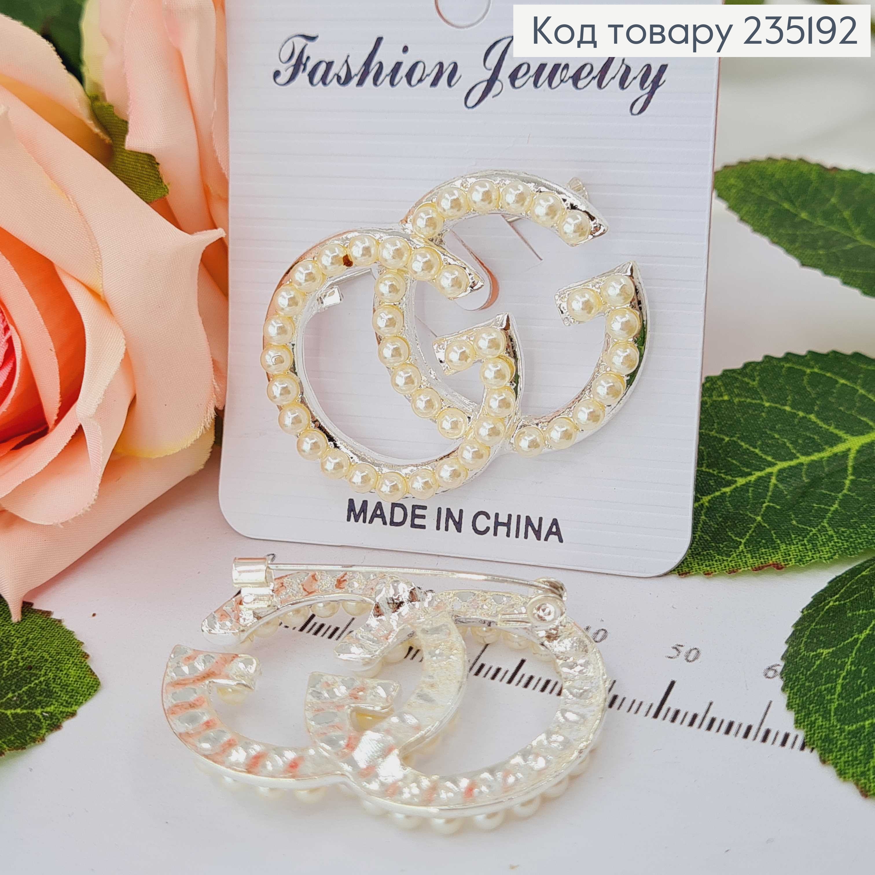 Брошь Гучи серебряного цвета в жемчужинах, 4,5см