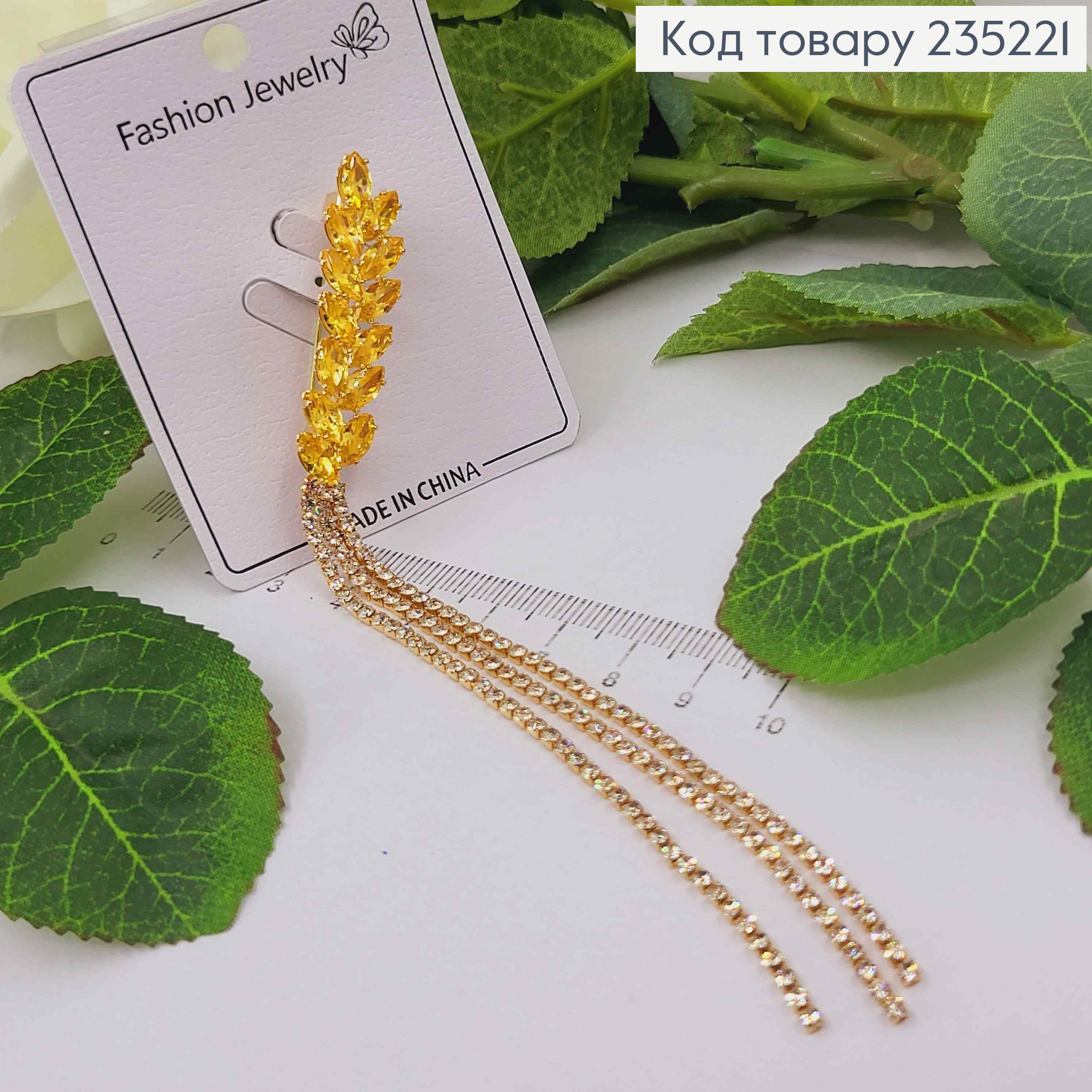 Брошка метал, колосок 4см, в жовтих камінцях, з ланцюжками 11см.