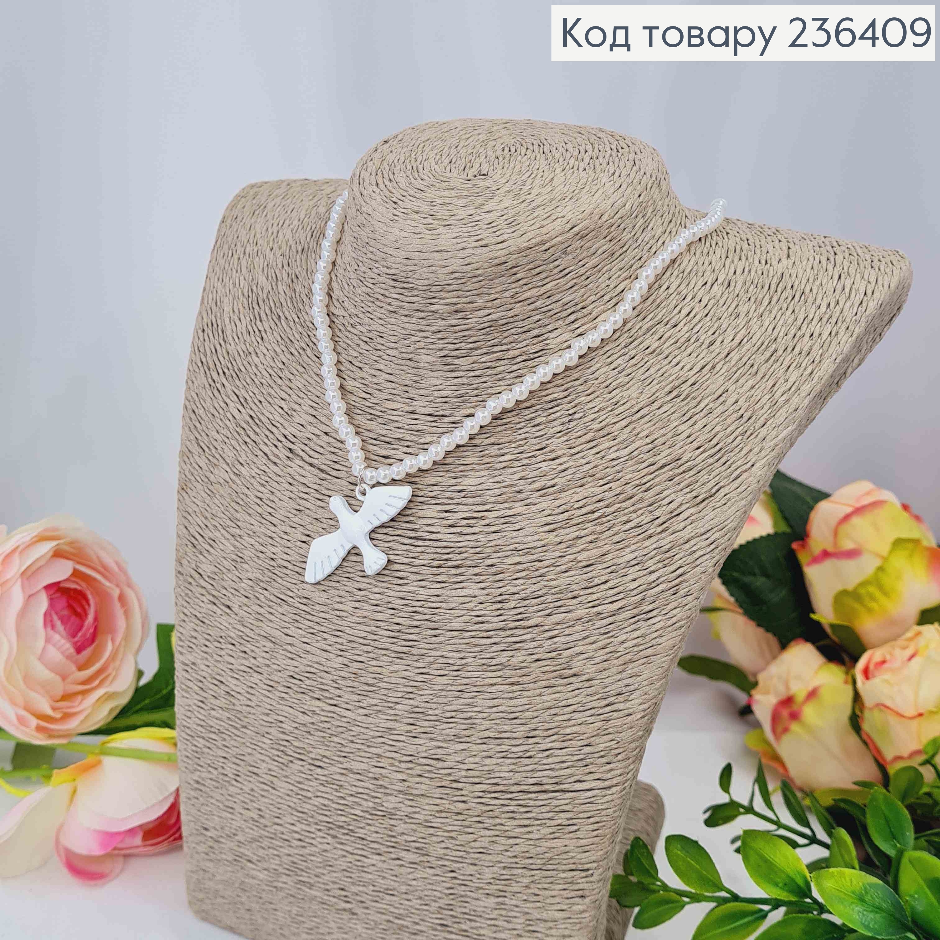 Буси Перламутрового кольору з підвіскою "Горлиця" (3см), довжина 40+4см 236470 фото