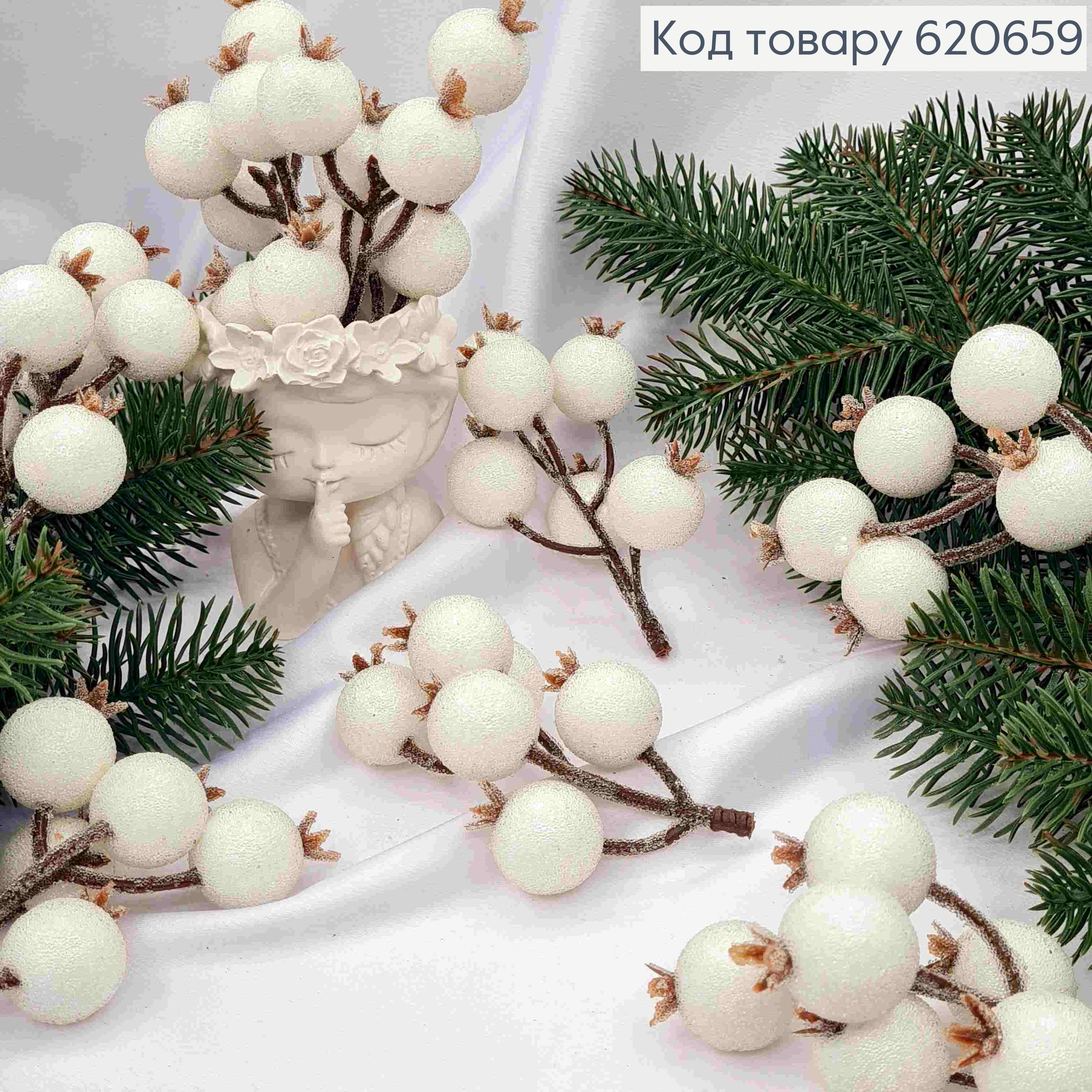 Декор Новорічний, "Гілочка з ягідками в цукрі", БІЛОГО кольору, 12см
