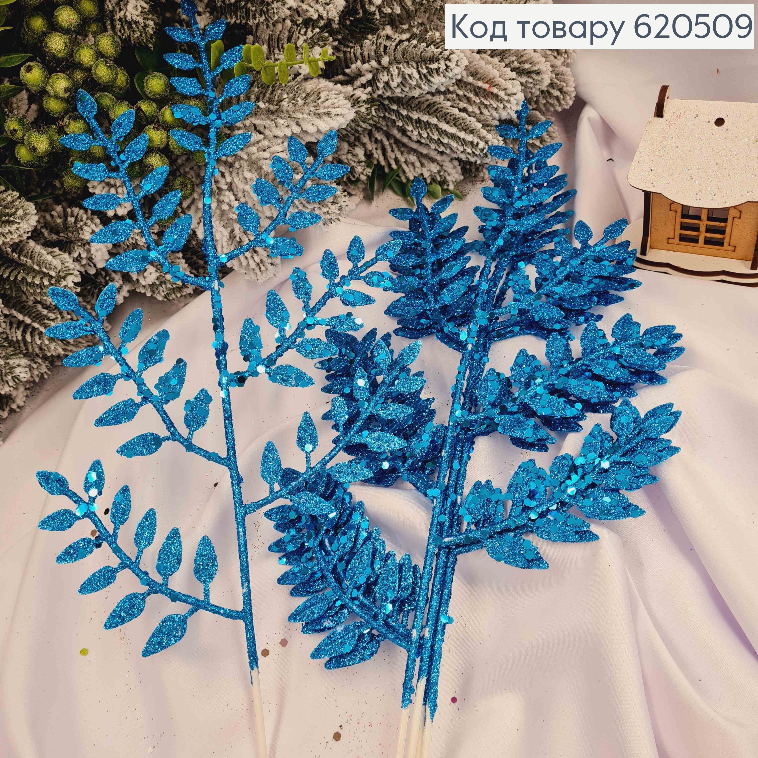 Набір гілок (5шт) Папороті БЛАКИТНОГО кольору, блиск, 5шт/уп, 36см, Україна