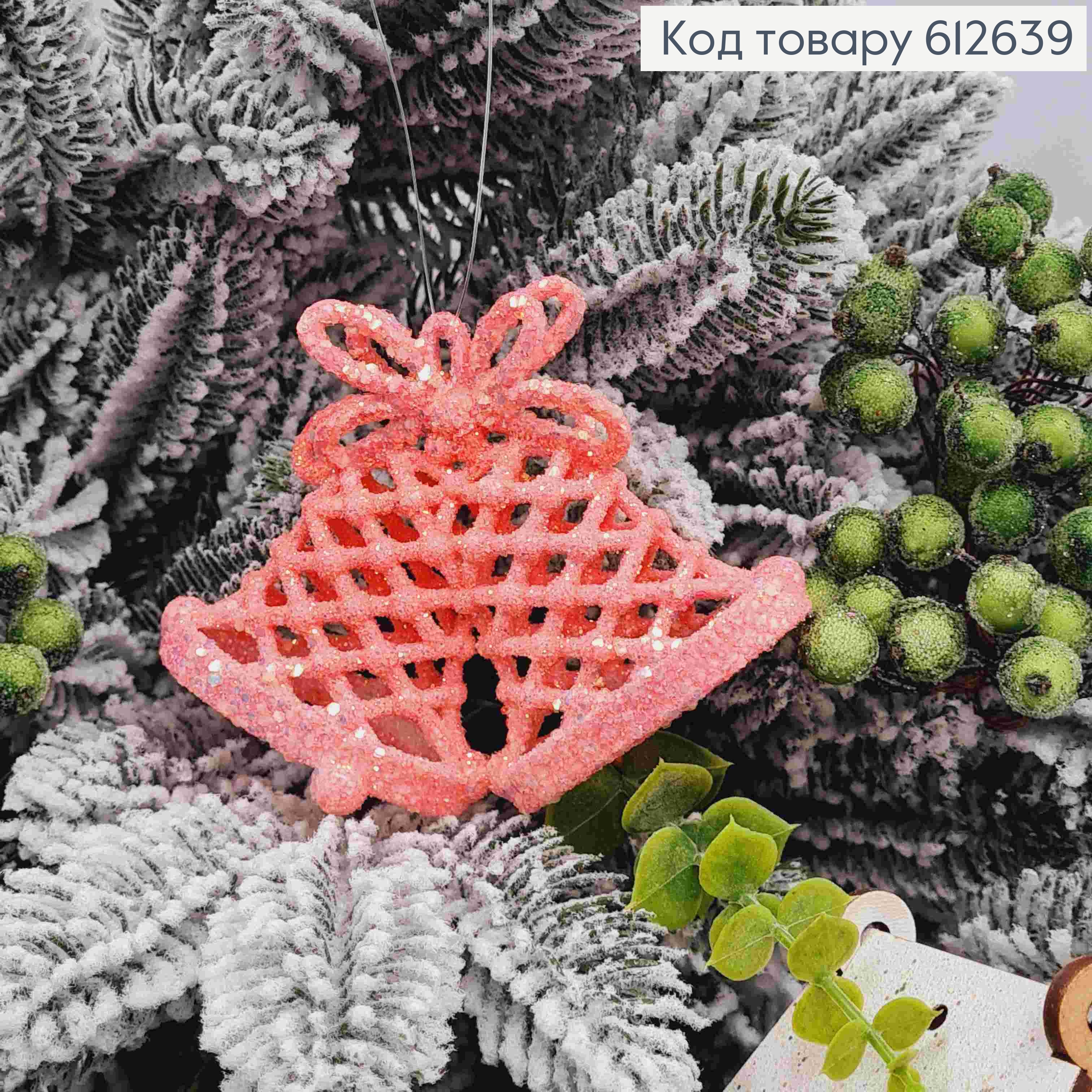 Дзвіночки,КОРАЛОВОГО кольору,10*8см, новорічна прикраси, пластикова, виготовлено в Україні