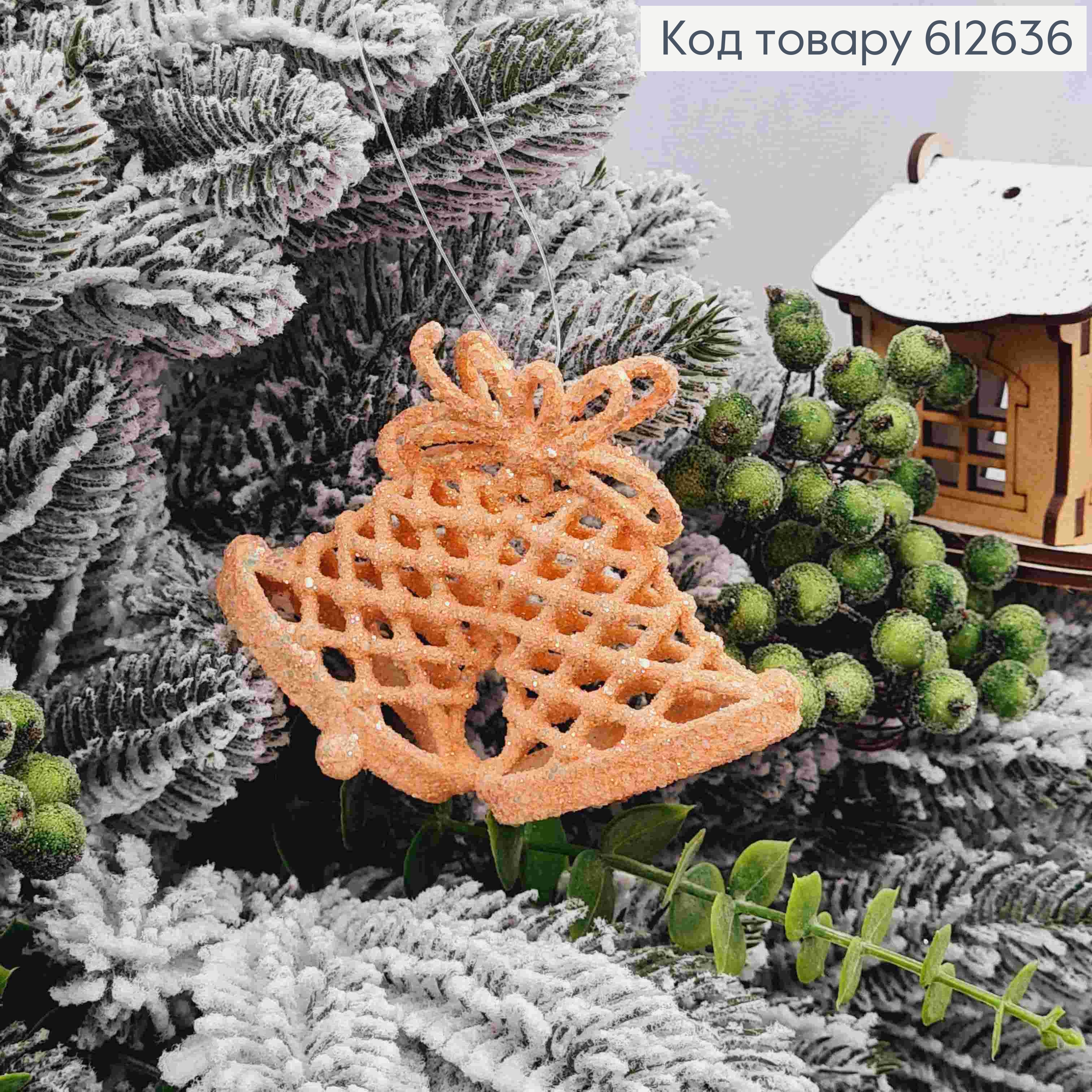 Дзвіночки,ПЕРСИКОВОГО кольору,10*8см, новорічна прикраси, пластикова, виготовлено в Україні