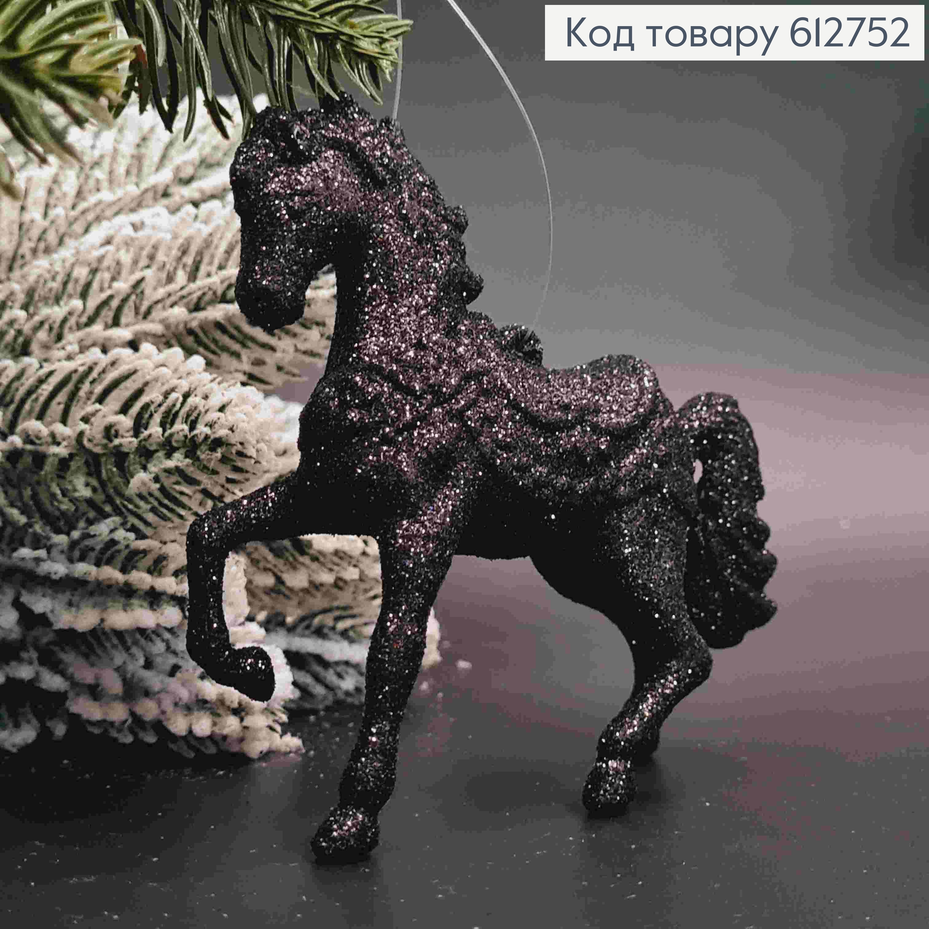 Фігурка  "КІНЬ", ПРОЗОРИЙ з ГРАФІТОВИМ блиском , 13*10см, новорічна прикраса, пластик,Україна 619381 фото